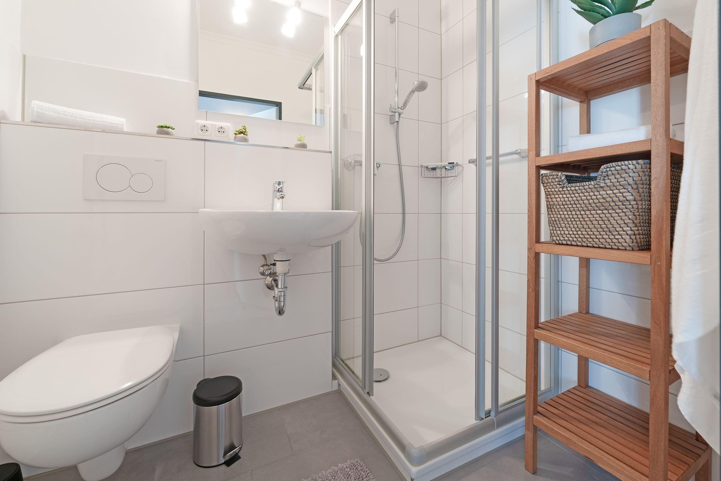 Ein PKW-Außenstellplatz ist für Sie reserviert. Waschmaschine und Trockner zur gemeinschaftlichen Nutzung gegen Gebühr. Der WLAN-Anschluss ist inklusive.