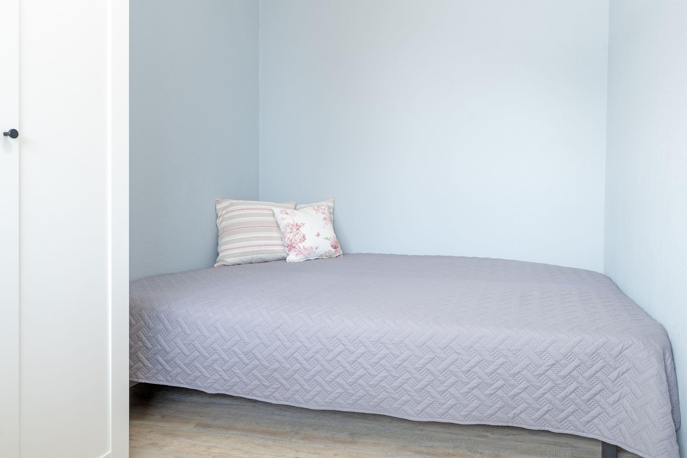 Schlafzimmer: 1 Schlafsofa (140x200 cm), Kleiderschrank, Verdunkelung: Rollo, Platz für Babybett vorhanden