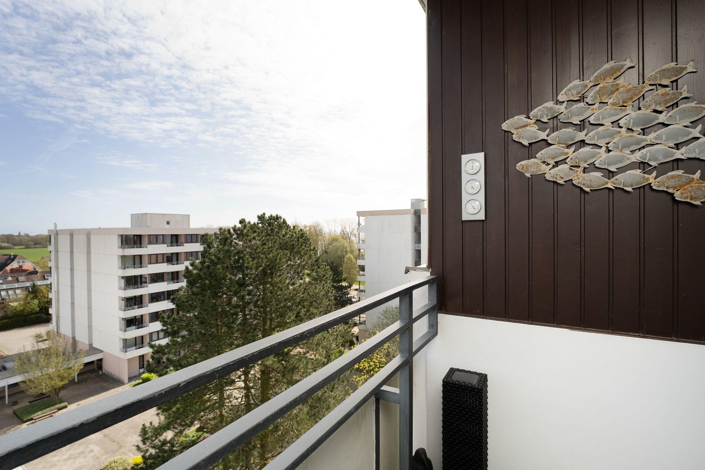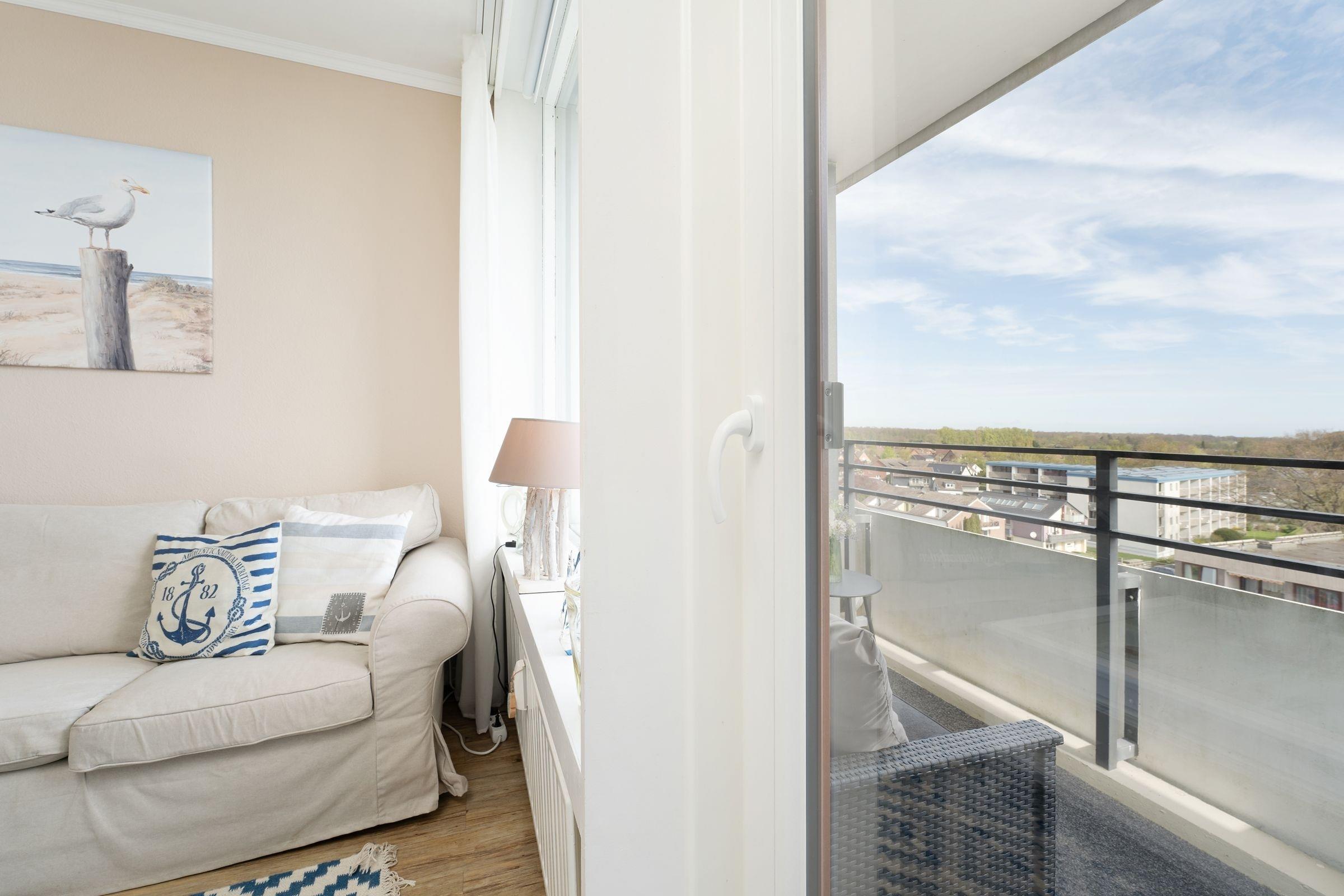 In bester Lage von Kellenhusen in der Wohnanlage Haus Meeresblick: strandnahe, ca. 46 m² große 3-Zimmer-Ferienwohnung im 7. Stock mit Balkon für bis zu 4 Personen.