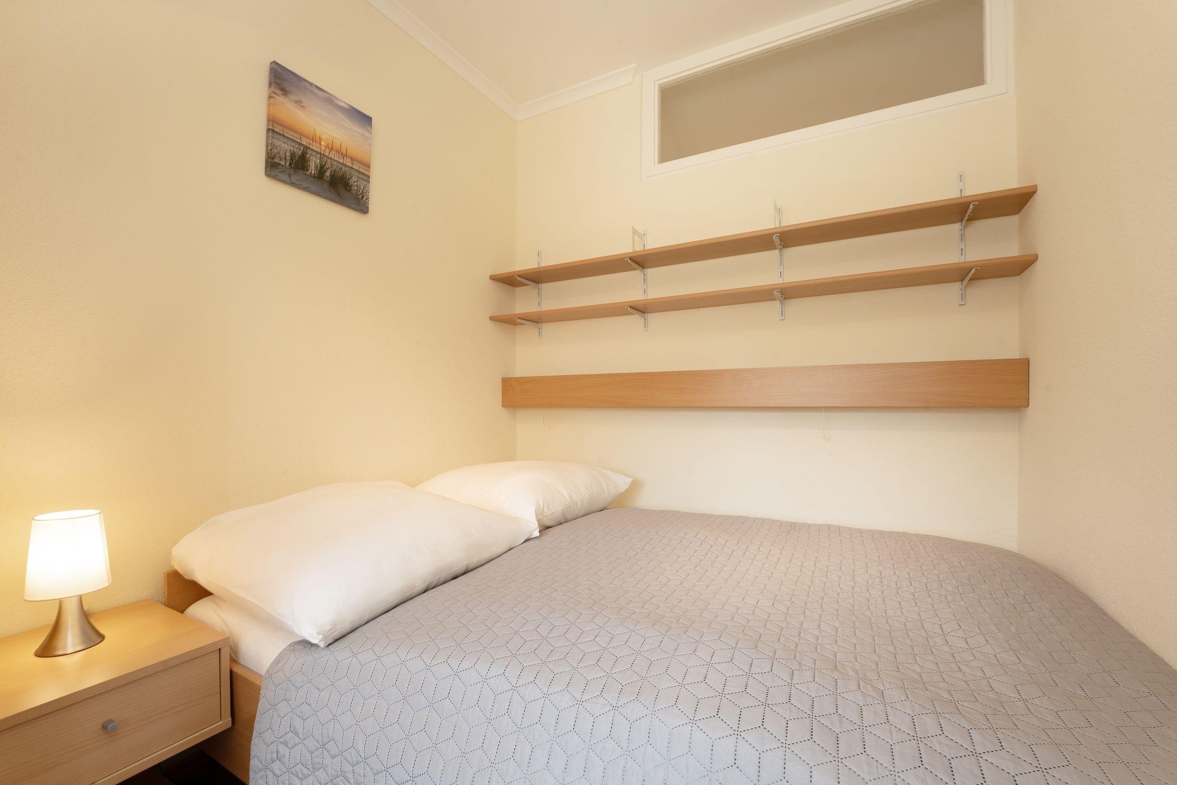 Nur rund 130 Meter vom Ostseestrand entfernt befindet sich die Wohnung Seestern in der schönen Ferienwohnanlage Strandappartements am Leuchtturmweg. Vom überdachten, möblierten Balkon aus können Sie die gute Seeluft genießen und die Möwen hören. Küstenurlaub pur! Im Wohn-/Schlafbereich befinden sich eine gemütliche TV-Ecke sowie für die Nacht ein bequemes Boxspringbett (2x 90x200 cm). Im separaten Schlafzimmer steht Ihnen zudem ein kleines Doppelbett (140x190 cm) zur Verfügung. Ein Kleiderschrank hier hat Platz für Ihre Urlaubgarderobe. Für die Selbstverpflegung gibt es eine Kochnische, die funktional ausgestattet ist und u.a. über ein Mikrowellen-Back-Kombigerät verfügt. Das innenliegende Duschbad mit Föhn und Kosmetikspiegel bringt Sie entspannt in den neuen Tag.