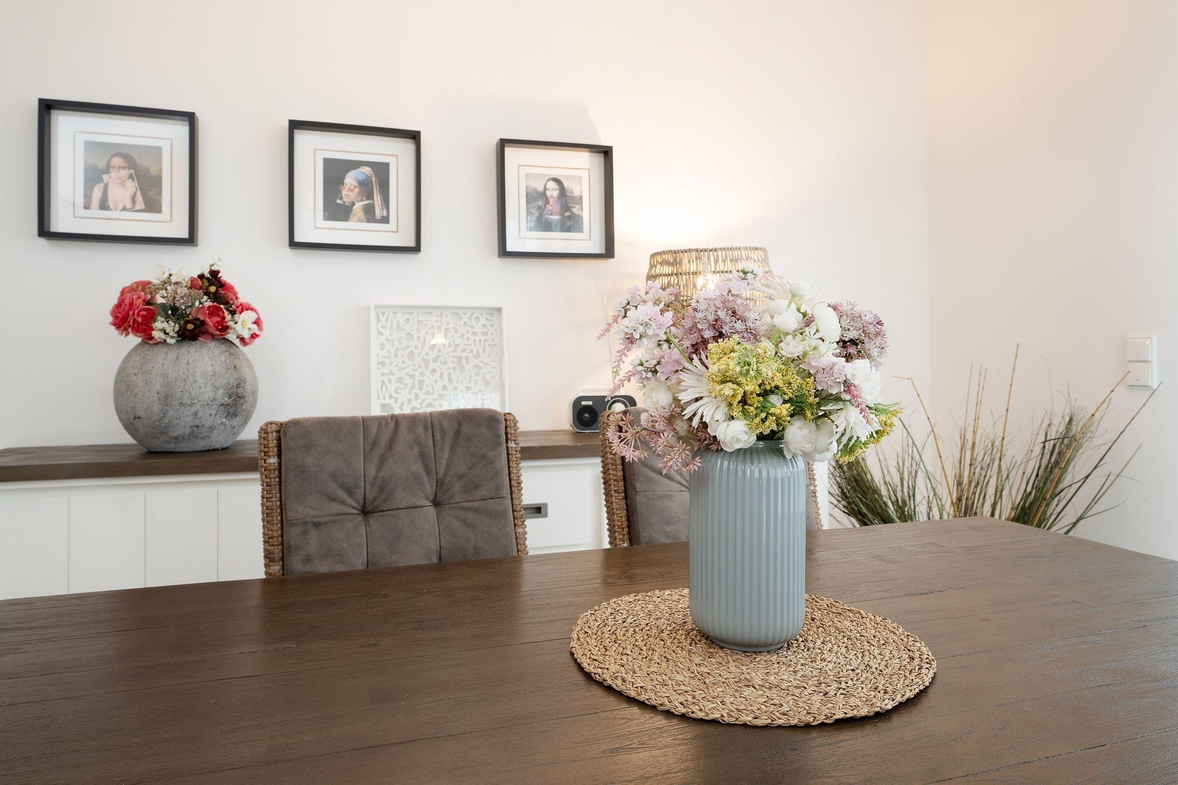 Nur wenige Schritte vom feinsandigen Strand entfernt, erwartet Sie diese liebevoll eingerichtete Ferienwohnung. Der lichtdurchflutete Wohnbereich bietet ideale Bedingungen für Entspannung nach einem Tag am Meer mit einem gemütlichen Sofa, Sessel und Flachbildfernseher. Die offene Küche ist voll ausgestattet, inklusive Elektroherd, Spülmaschine und Kaffeemaschine, sodass Sie Ihre Lieblingsgerichte bequem zubereiten oder sich an neu entdeckten regionalen Spezialitäten versuchen können. Der Essbereich lädt zu gemeinsamen Mahlzeiten ein.