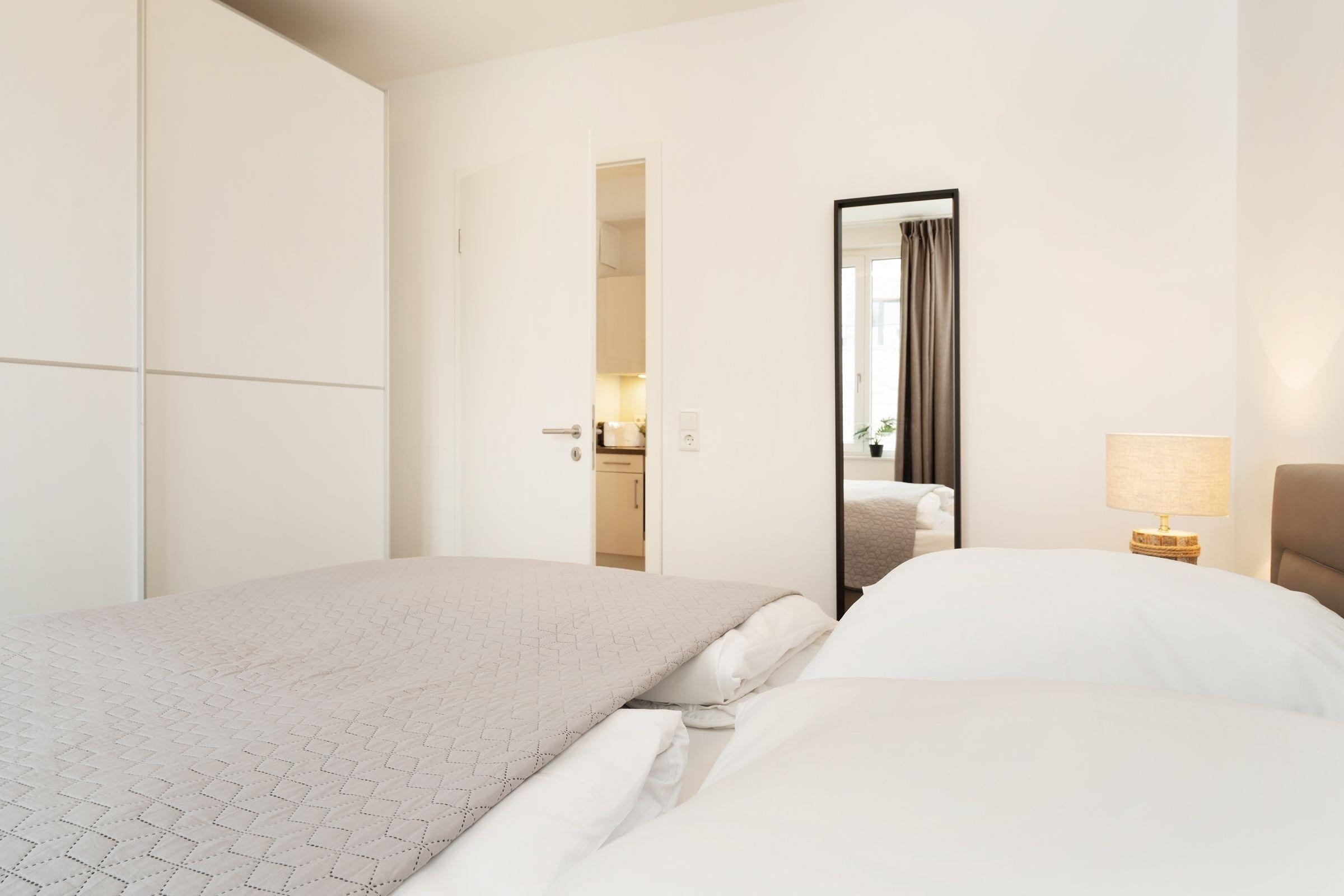 Der Südbalkon ist ein Highlight, auf dem Sie die Sonne genießen und die frische Meeresbrise spüren können. Die beiden Schlafzimmer, eines mit Doppelbett und TV, das andere mit zwei Einzelbetten, bieten komfortablen Schlaf und viel Stauraum in je einem Kleiderschrank. Das moderne Badezimmer ist mit einer bodengleichen Dusche, Fußbodenheizung, Handtuchwärmer und Haartrockner ausgestattet.