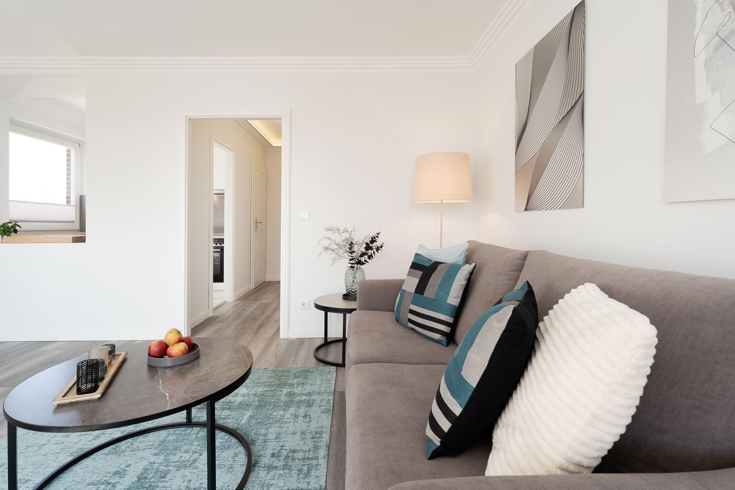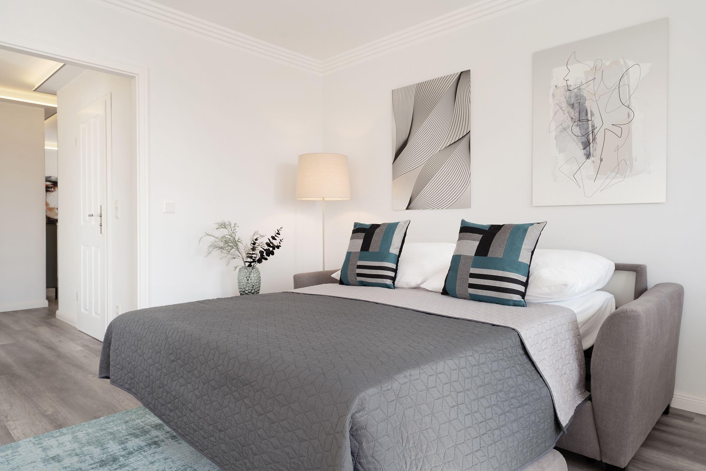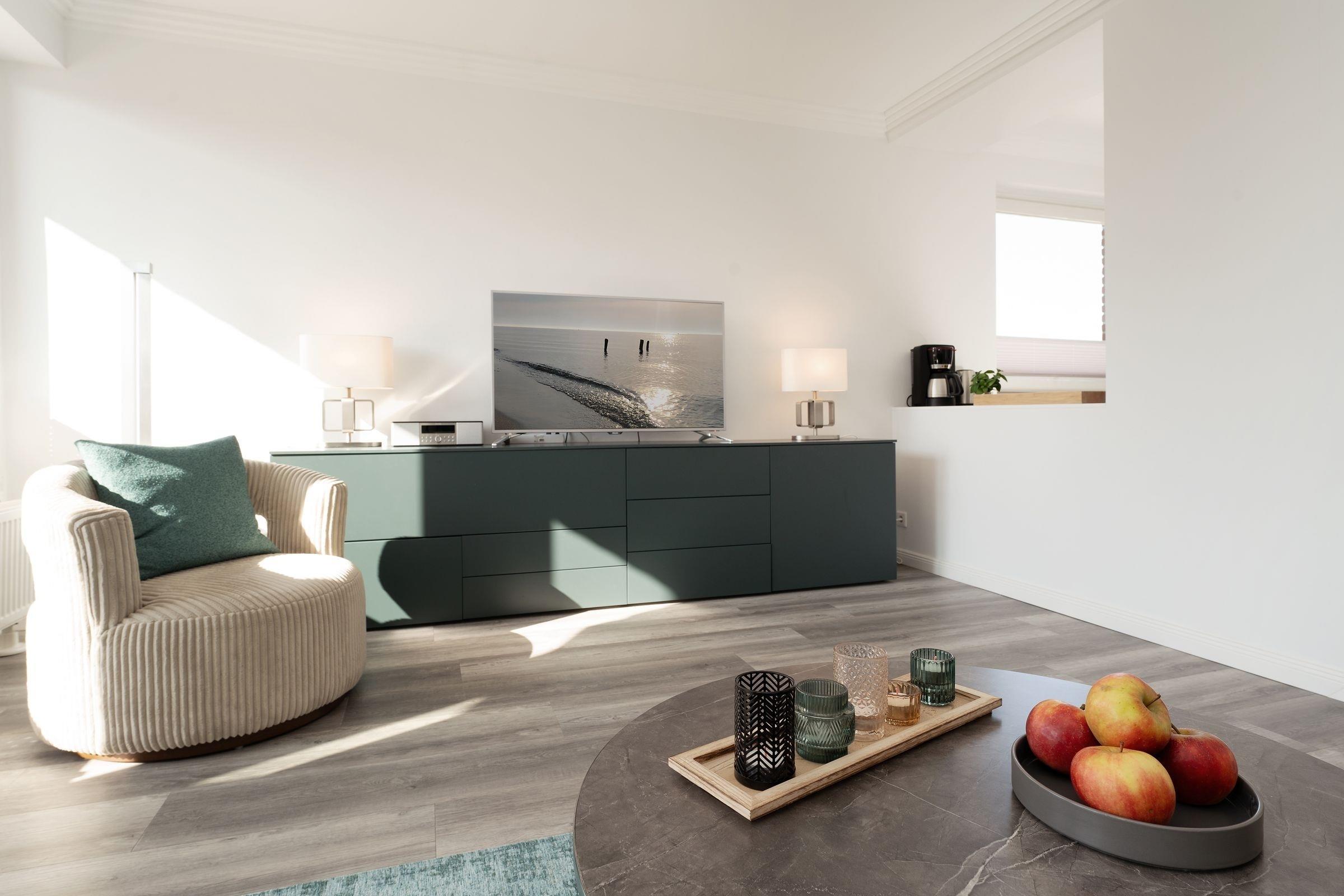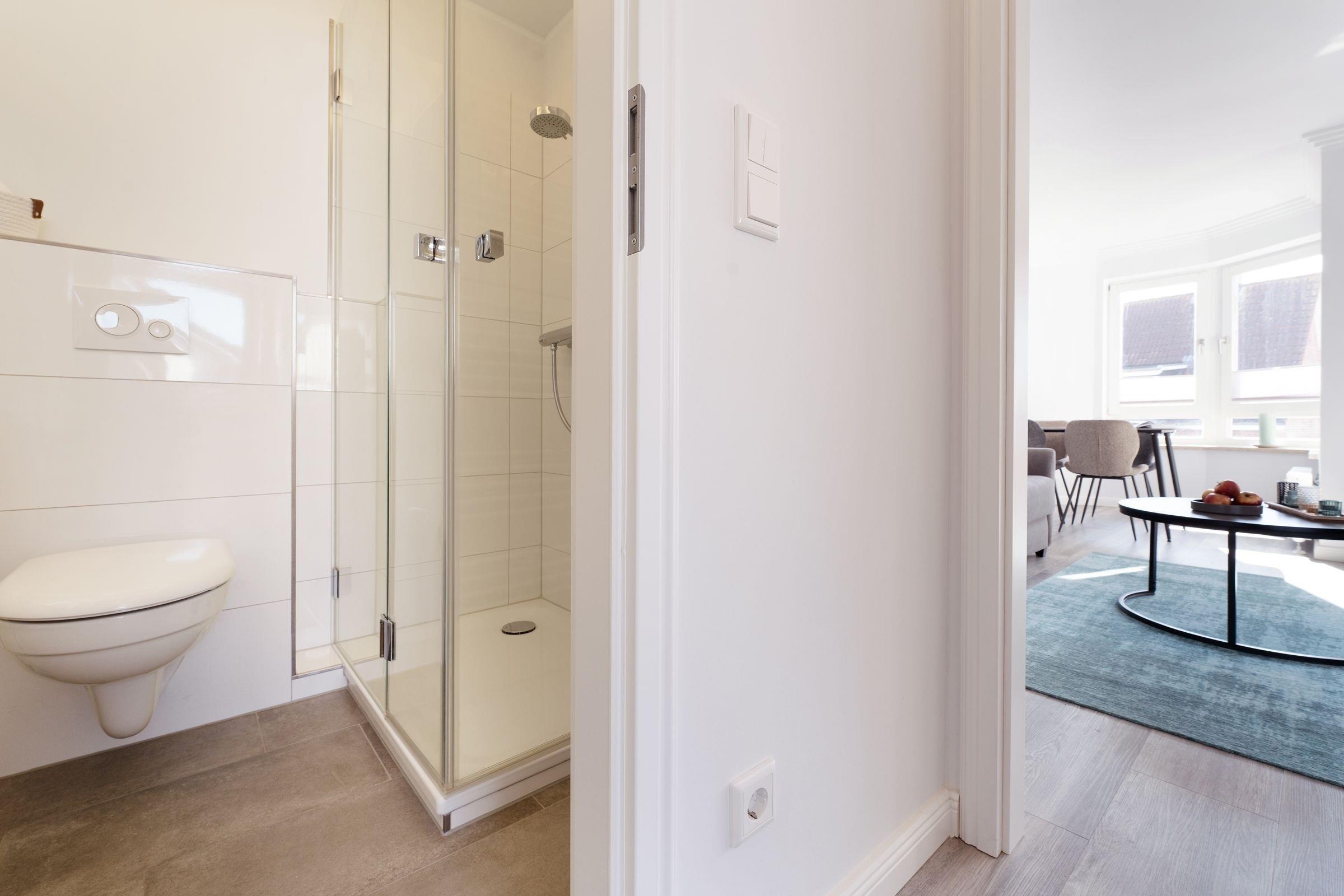 Hier trifft Moderne auf guten Geschmack. Die traumhafte Ferienwohnung Jellyfish bietet die perfekte Unterkunft für einen erholsamen Ostseeurlaub. Nur 240 m vom Strand entfernt, genießen Sie hier eine moderne und komfortable Ausstattung Das helle Wohnzimmer lädt mit einem bequemen Sofa, einem Sessel und einem TV zum Entspannen ein. Auch steht hier ein stylischer Essplatz für Sie bereit. Große Fenster lassen viel Licht in den Raum und sorgen für eine freundliche Atmosphäre. Vom Wohnbereich aus gelangen Sie auf den möblierten Balkon mit Südausrichtung für angenehme Stunden im Freien. Die halb-offene Küche ist gut ausgestattet mit einem Cerankochfeld, Backofen, Kühlschrank mit Gefrierfach, Kaffeemaschine, Toaster und Spülmaschine. Das separate Schlafzimmer ist mit einem komfortablen Doppelboxspringbett (2000x200 cm) und ausreichend Stauraum eingerichtet. Das Sofa im Wohnbereich bietet bei Bedarf einen Schlafplatz (140x200 cm) für zwei weitere Gäste. Das Badezimmer verfügt über eine Dusche, Waschbecken, WC und einen Haartrockner.