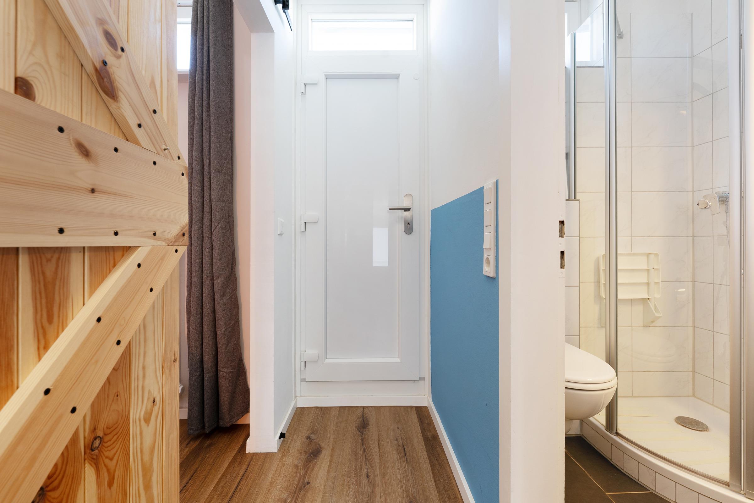 Schlafzimmer: 1 Doppelbett (2x 80x200 cm), Verdunkelung: Vorhang, kein Platz für ein Babybett vorhanden