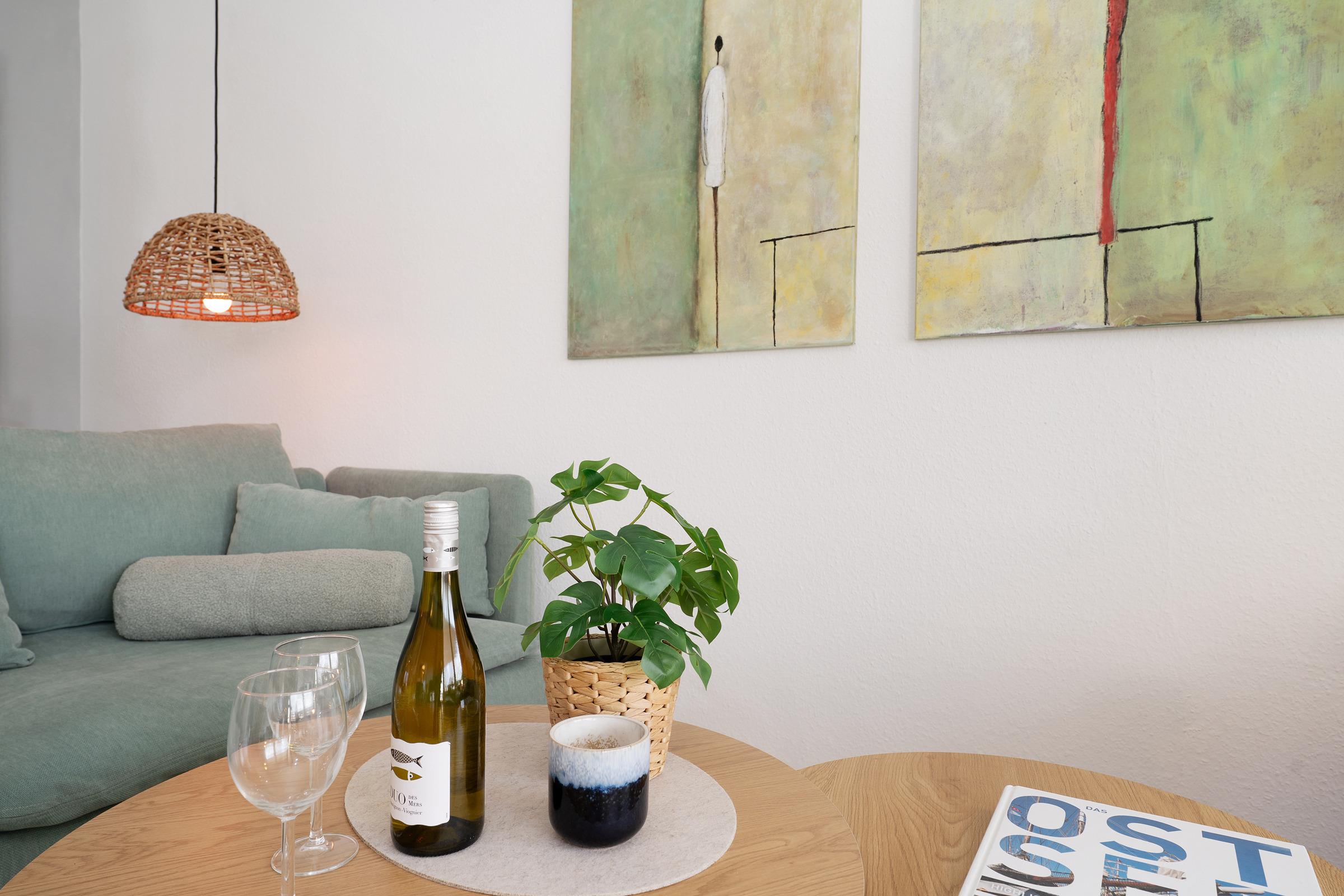 Herzlich Willkommen in Ihrem Zuhause auf Zeit. Diese gemütliche Ferienunterkunft liegt in einer verkehrsberuhigten Straße und erwartet Sie mit einem Wohnzimmer, das mit Schlafsofa, TV und Essecke erholsame und gesellige Stunden nach einem langen Strandtag verspricht. Von hier aus haben Sie Zugang zum Balkon in südlicher Lage, der zum Verweilen in der Sonne einlädt. In der im Wohnzimmer integrierten Küche mit Kaffeemaschine, Toaster, Mikrowelle, Ceran-Kochfeld, Backofen, Geschirrspüler, etc. können Sie sich den frischen Fisch aus der Region und andere köstliche Mahlzeiten zubereiten. Über den Flur erreichen Sie das erste von zwei Schlafzimmern, das mit zwei getrennt stehenden Betten (je 90x200 cm) ausgestattet ist. In einem weiteren Schlafzimmer verbringen Sie erholsame Nächte im bequemen Doppelbett (140x200 cm). Ein erfrischenden Start in den Tag garantiert das funktionale Bad mit Dusche und WC.