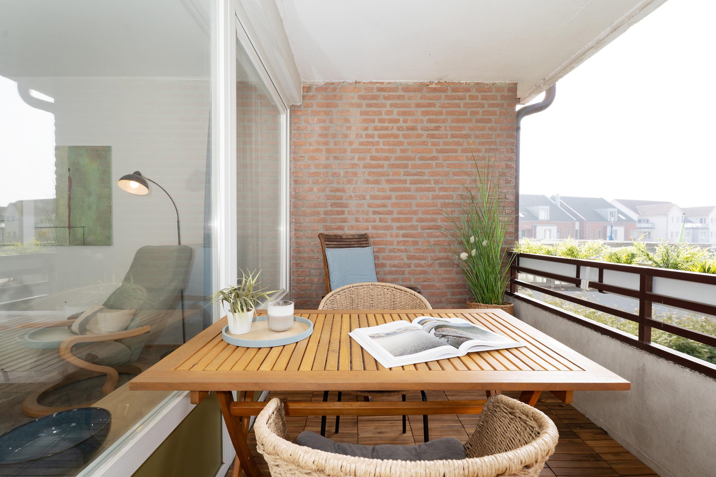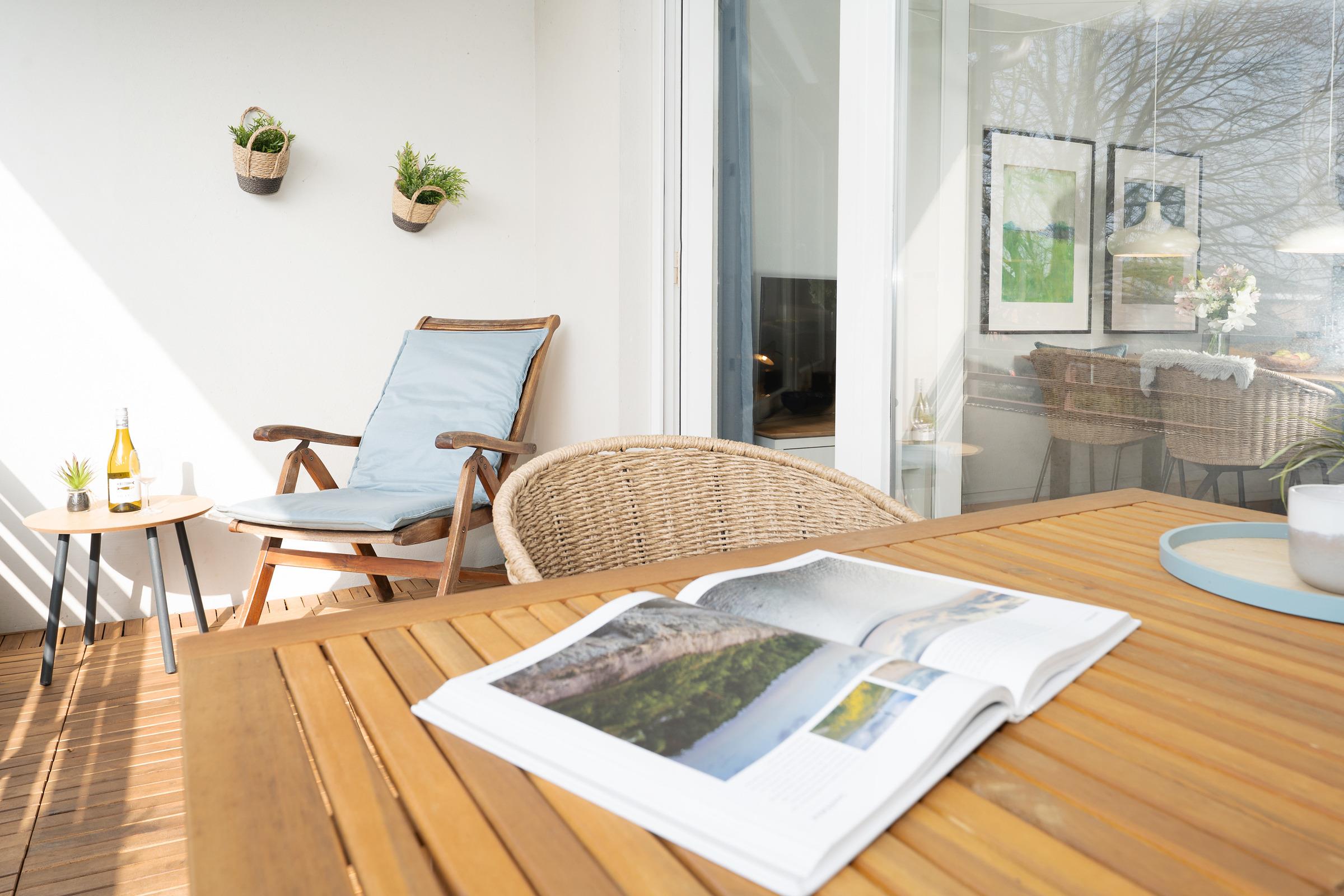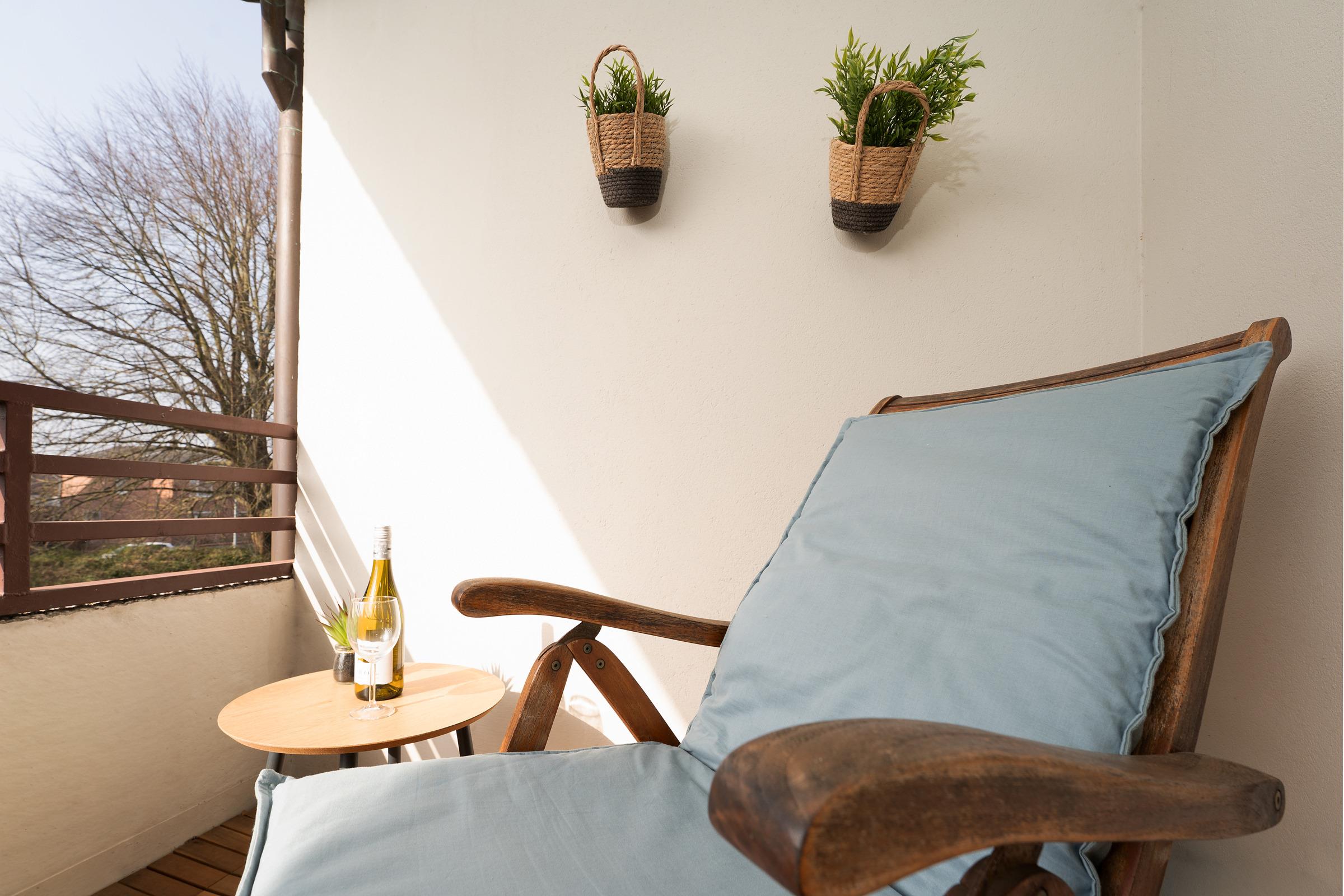 Gemütliche Ferienwohnung mit Balkon nahe dem Strand von Kellenhusen, ideal für erholsame Tage an der Ostsee.