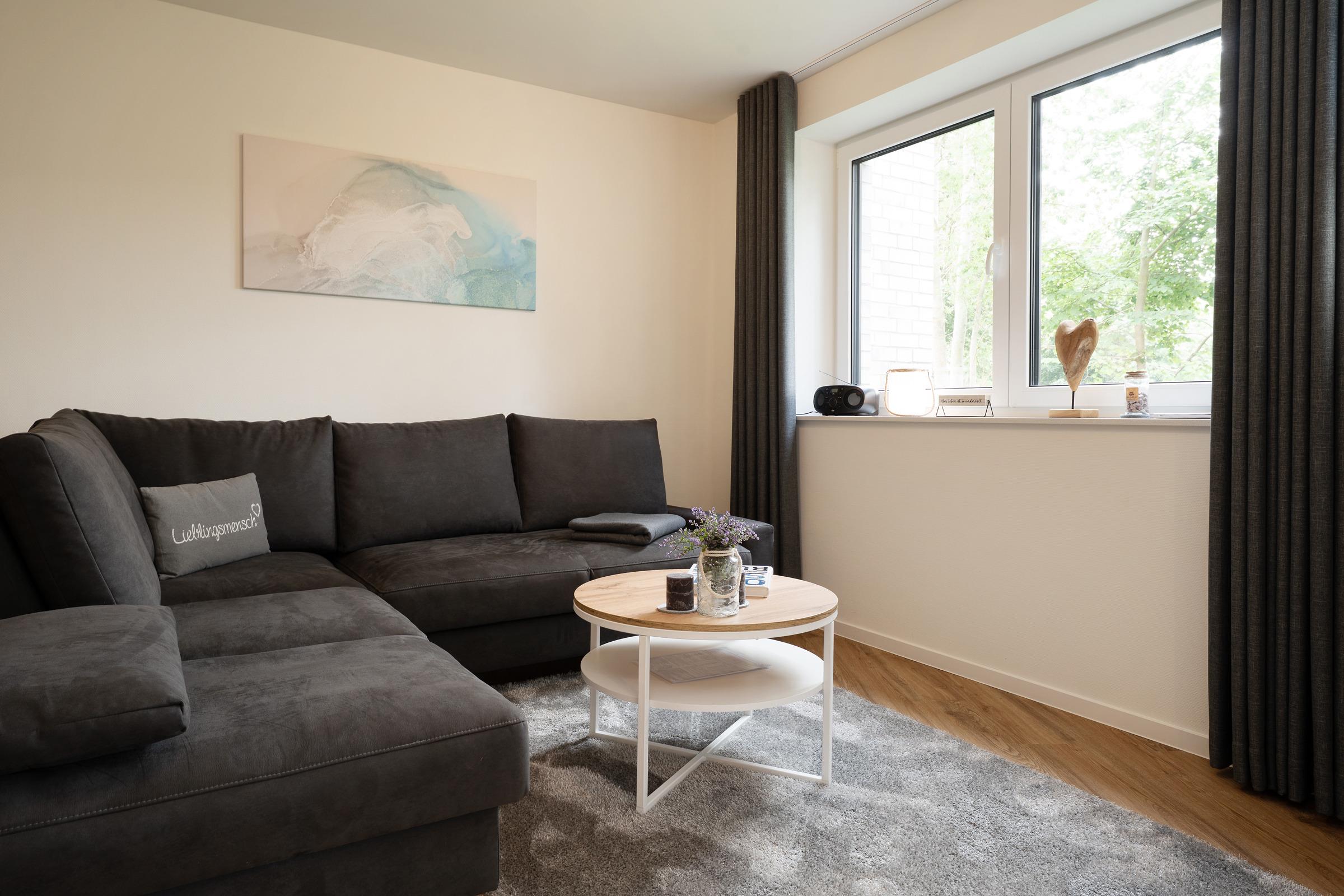 Die liebevoll eingerichtete Ferienwohnung bietet Ihnen ideale Voraussetzungen für entspannte Urlaubstage an der Ostseeküste. Der gemütliche Wohnbereich ist mit TV und Radio ausgestattet und lädt zu entspannten Abenden ein. Durch große Fenster gelangt viel Licht in den Raum, Verdunklungsmöglichkeiten sind ebenfalls vorhanden.