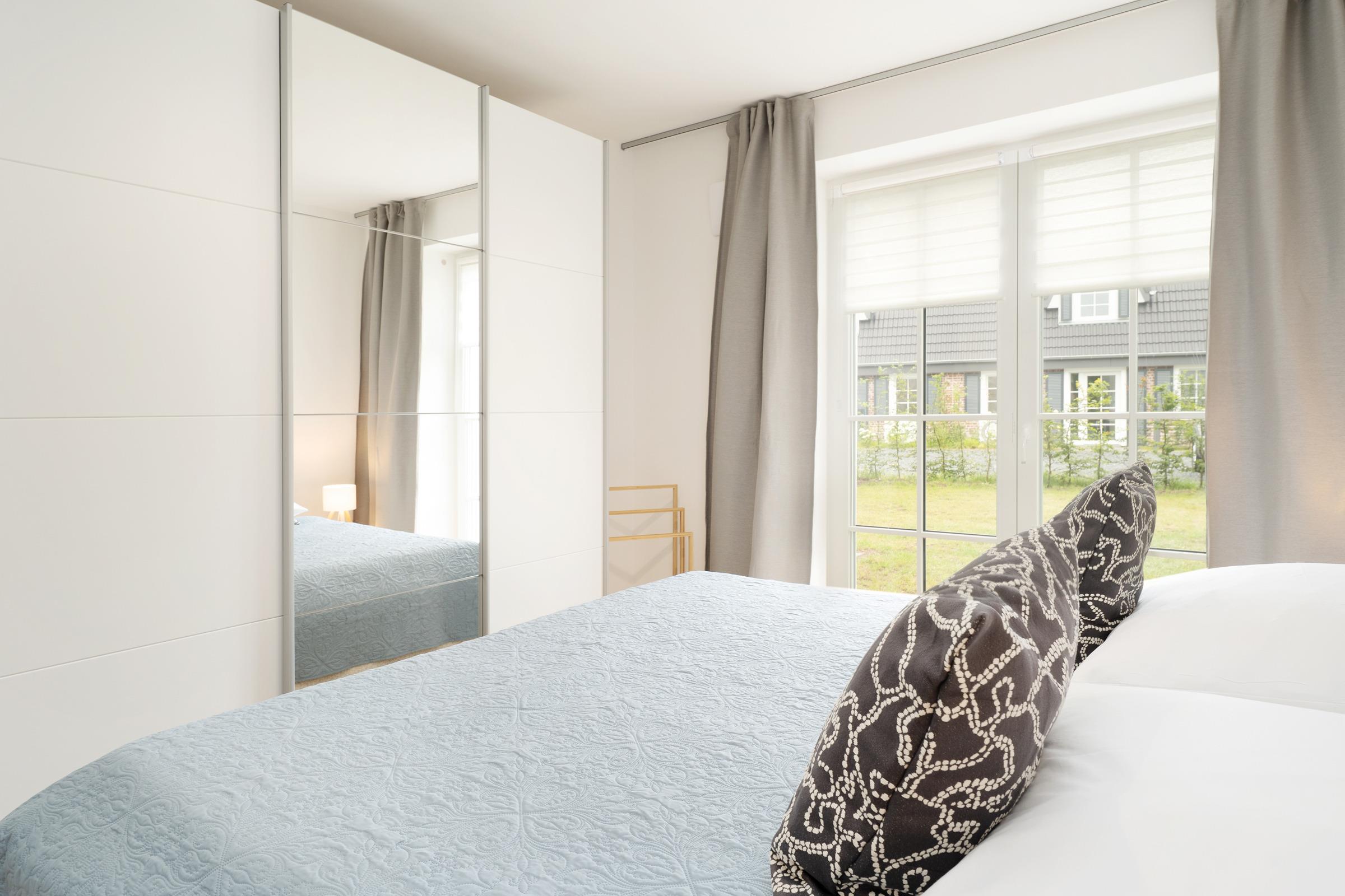 Schlafzimmer: 1 Doppelbett (2x 90x200 cm), Kleiderschrank, Verdunkelung: Verdunkelungsvorhang, Platz für ein Babybett vorhanden
