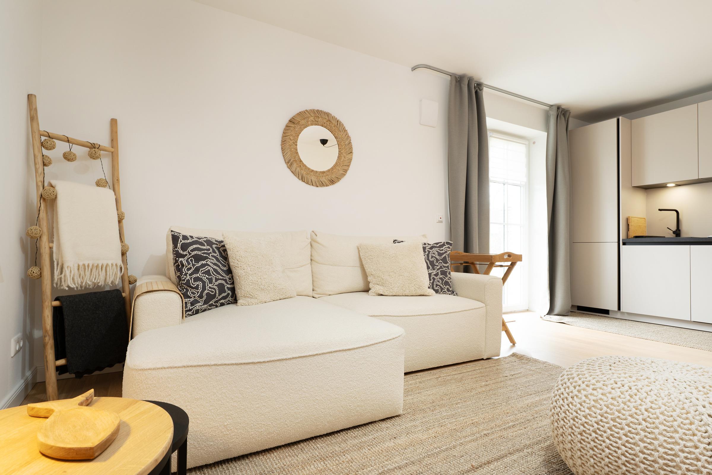 Diese helle und stilvoll eingerichtete Ferienwohnung im Erdgeschoss erwartet Sie mit modernster Ausstattung in traumhafter Lage neben einem Apfelgarten. Der kombinierte Wohn- und Essbereich bietet einen komfortablen Rückzugsort mit Fernseher und direktem Zugang zur möblierten Terrasse – hier können Sie bei frischer Ostseeluft entspannen oder gemütliche Grillabende verbringen.