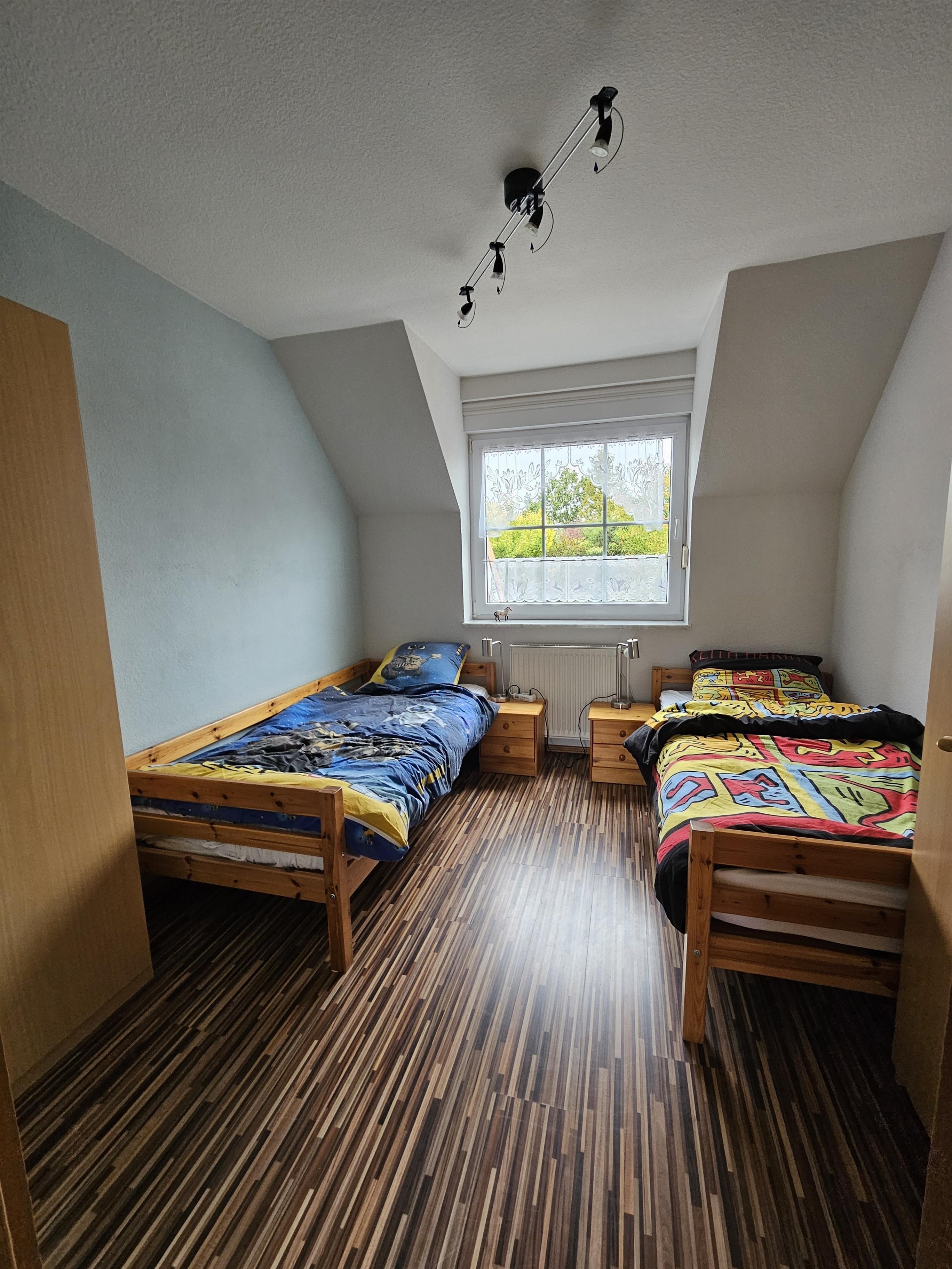 2 Schlafzimmer mit komfortablen Betten und Kleiderschränken (1 Doppelbett und 2 Einzelbetten)