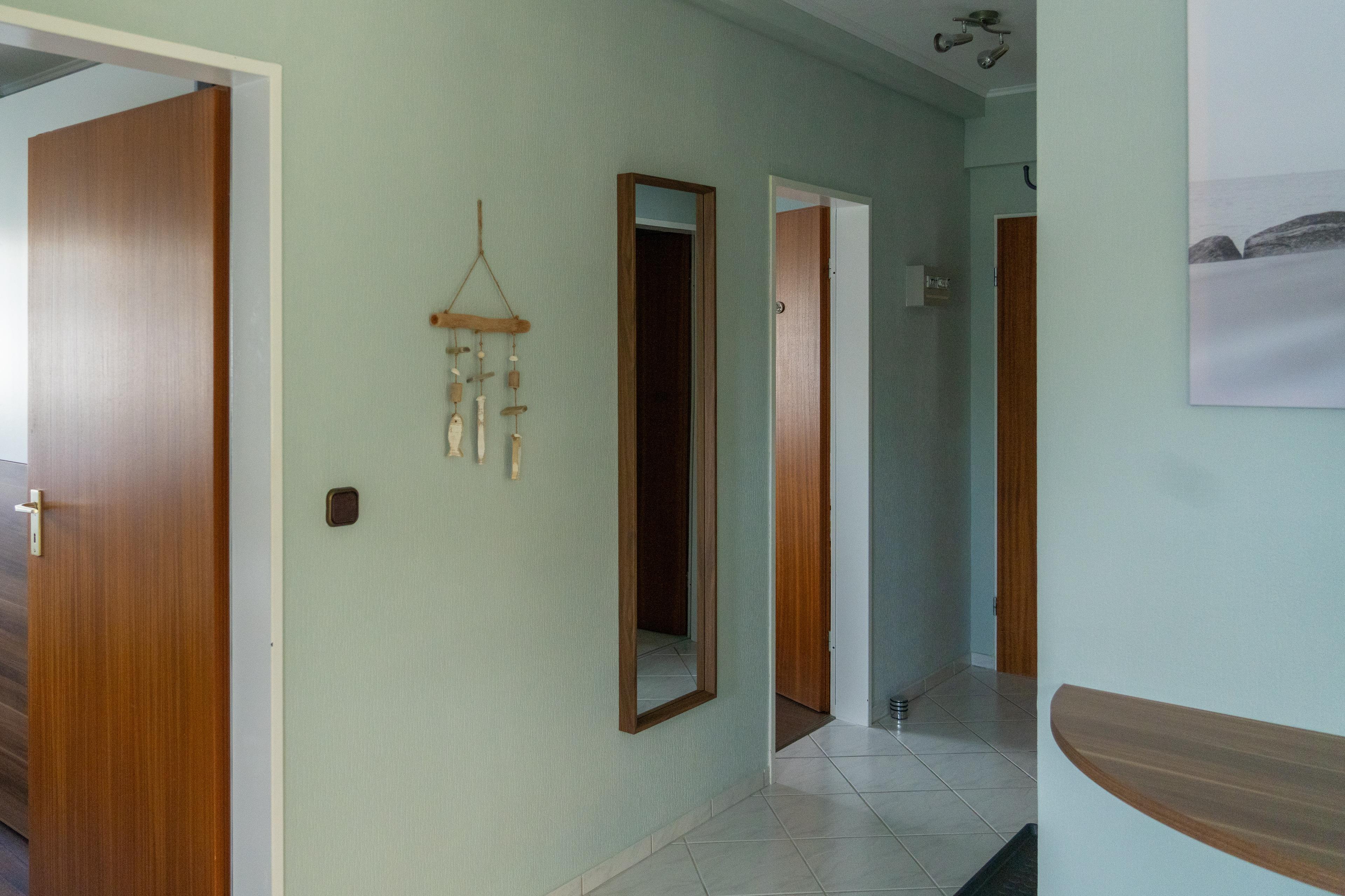 Aufgeteilt ist Ihr Ferienobjekt in Eingangsbereich mit Garderobe, Badezimmer mit Dusche, Haartrockner, WC, einem Schlafzimmer mit Doppelbett und Kleiderschrank.