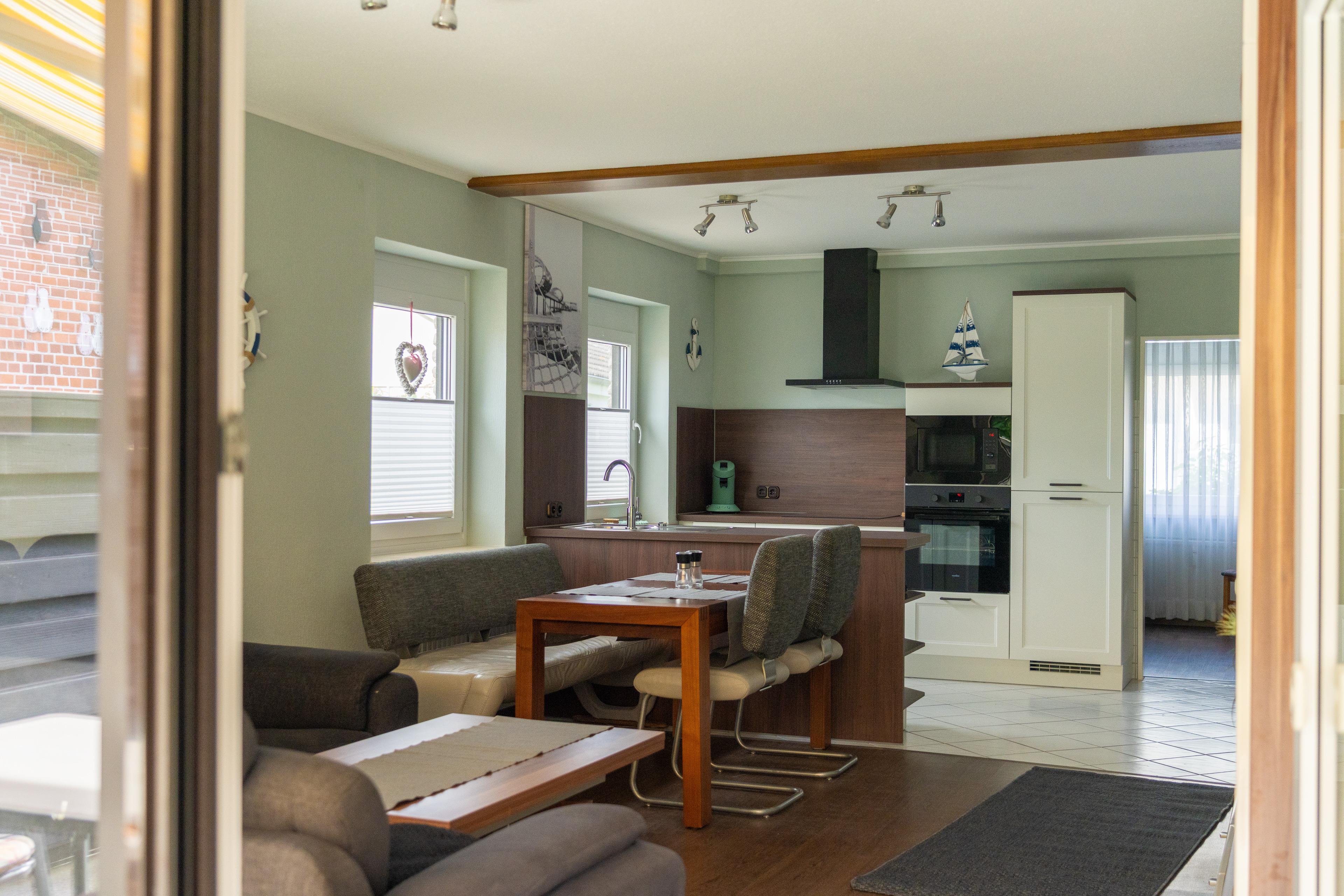 Die offene Küchenzeile im Wohnbereich ist mit einem