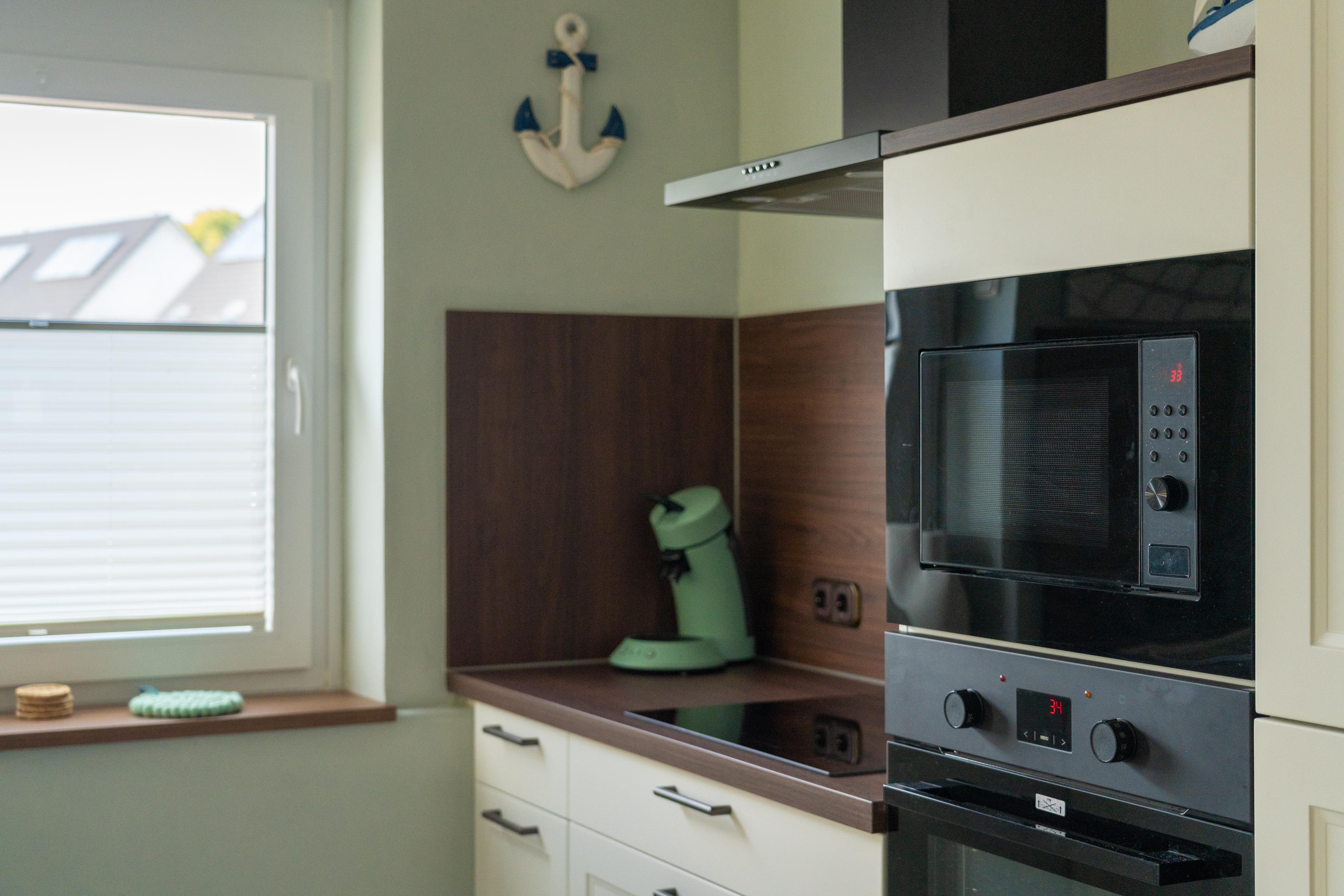 Cerankochfeld, Geschirrspüler, Backofen, Mikrowelle und einem Kühlschrank sowie Gefrierschrank ausgestattet.