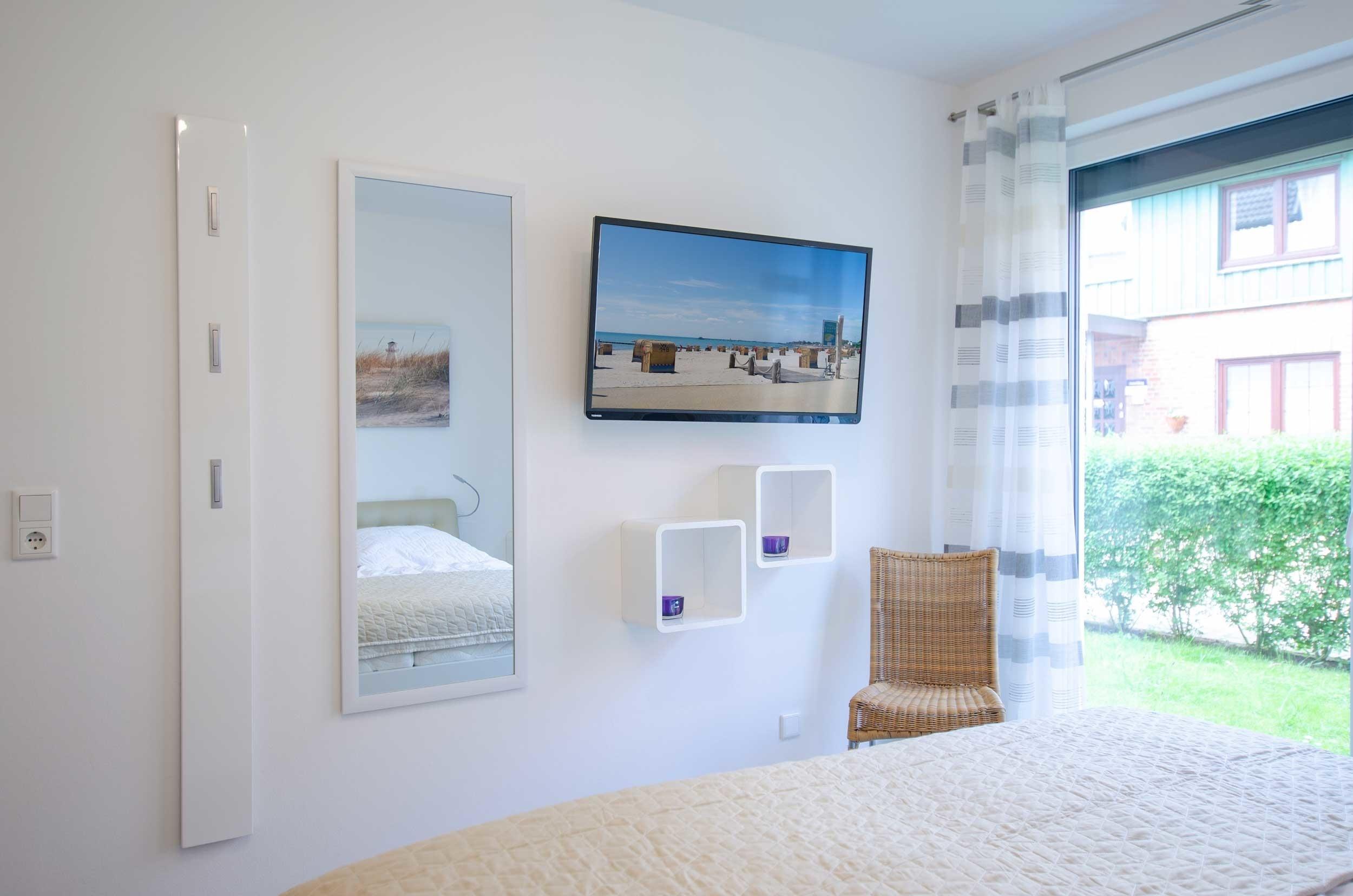 In Ihrem Schlafzimmer stehen Ihnen ein Doppelbett (1,80m x 2,00m), ein Schiebetüren-schrank sowie ein zweites LCD-TV-Gerät (40 Zoll) zur Verfügung.