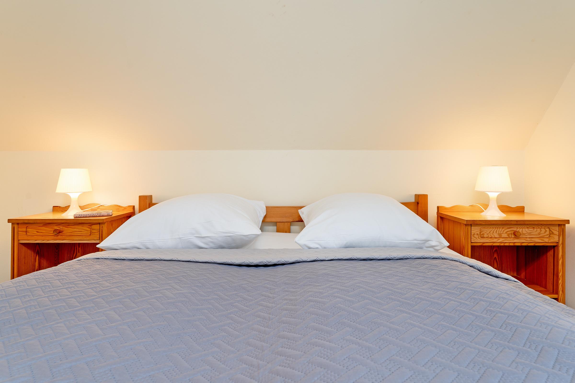 Schlafzimmer 2 (1. OG): 1 Doppelbett (2x 90 x 200 cm), Kleiderschrank, Verdunkelung: Gardinen, Platz für ein Babybett