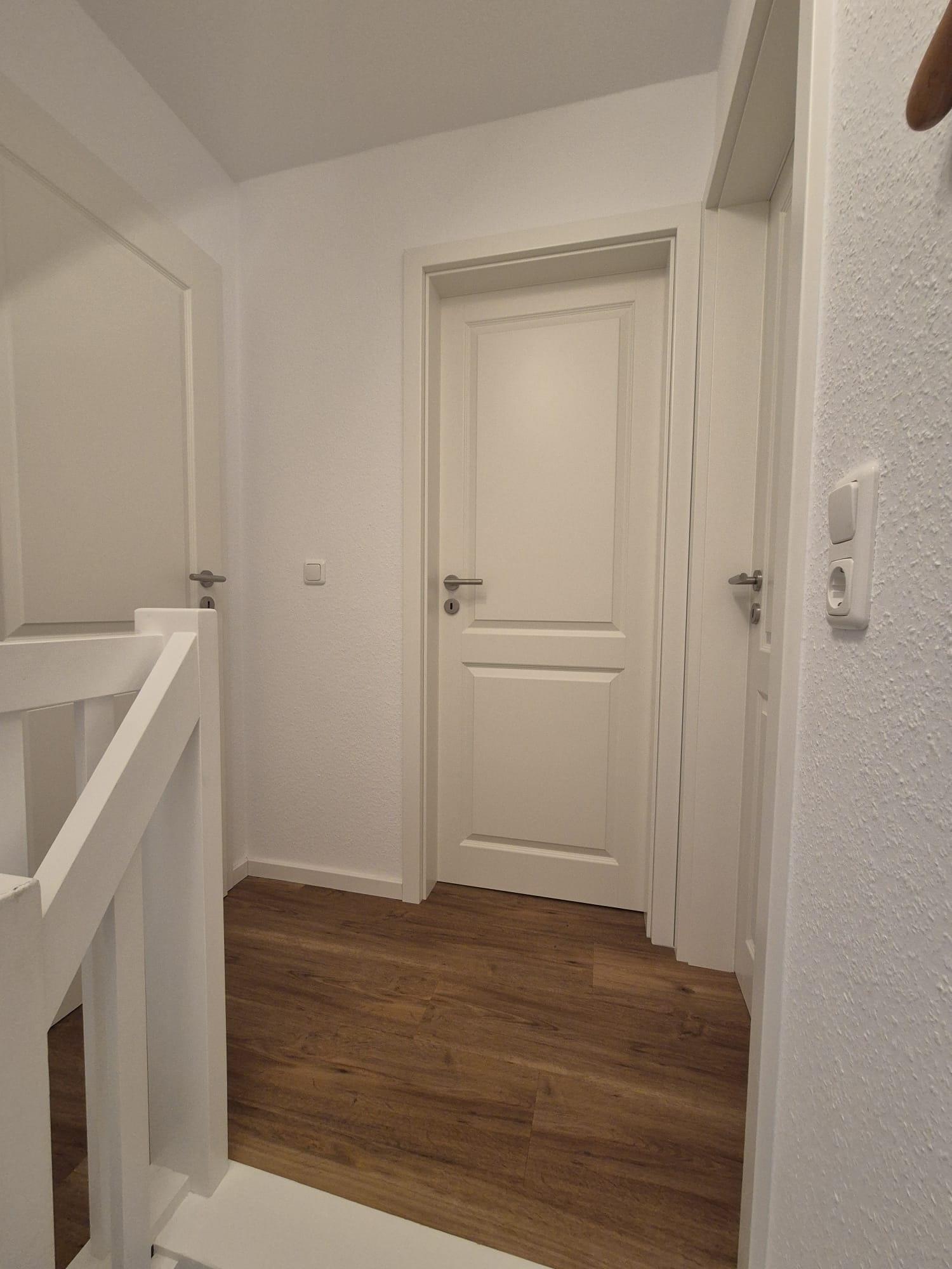 Im Obergeschoss befinden sich zwei Schlafzimmer und ein neu gestaltetes Bad mit