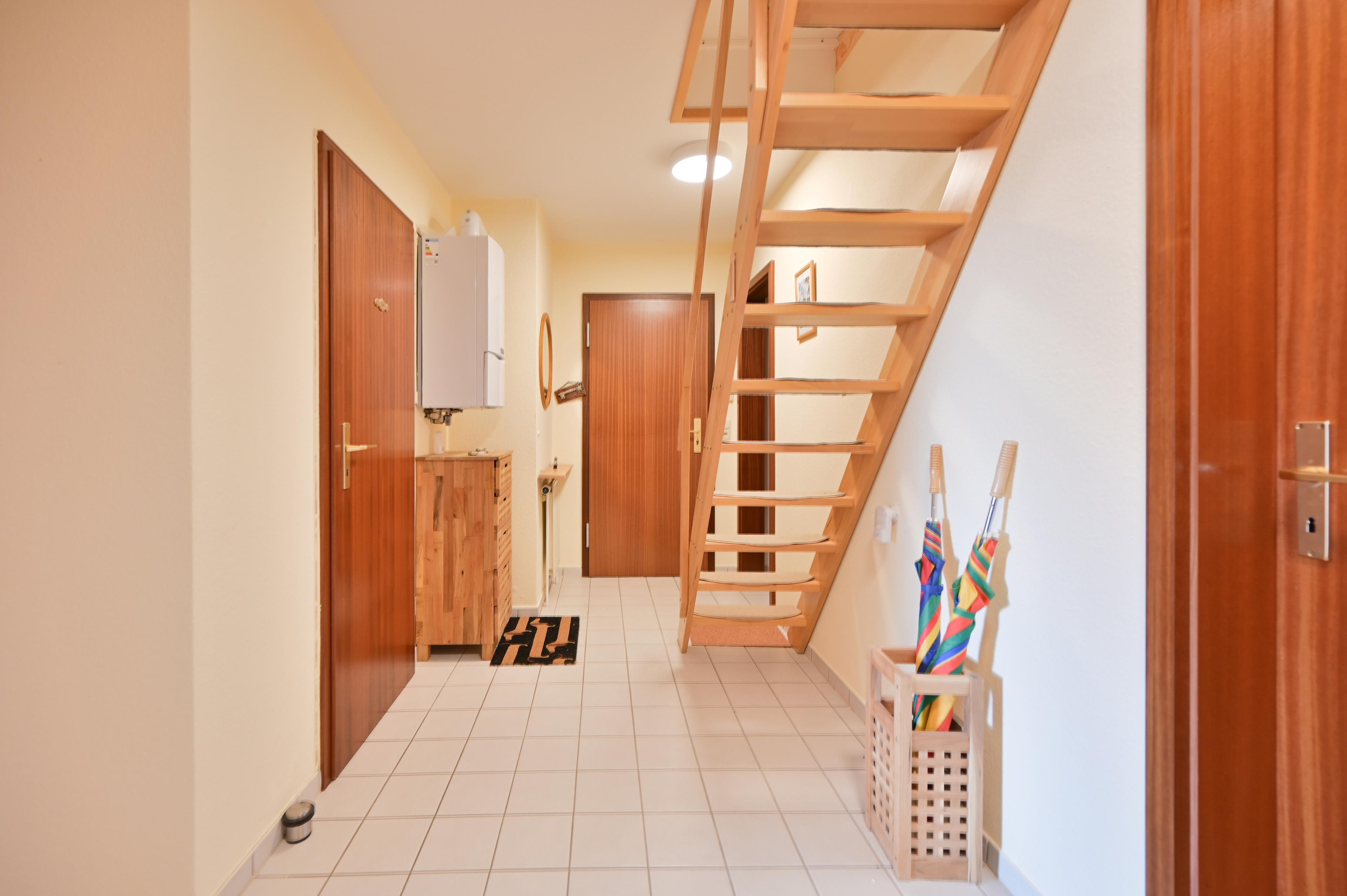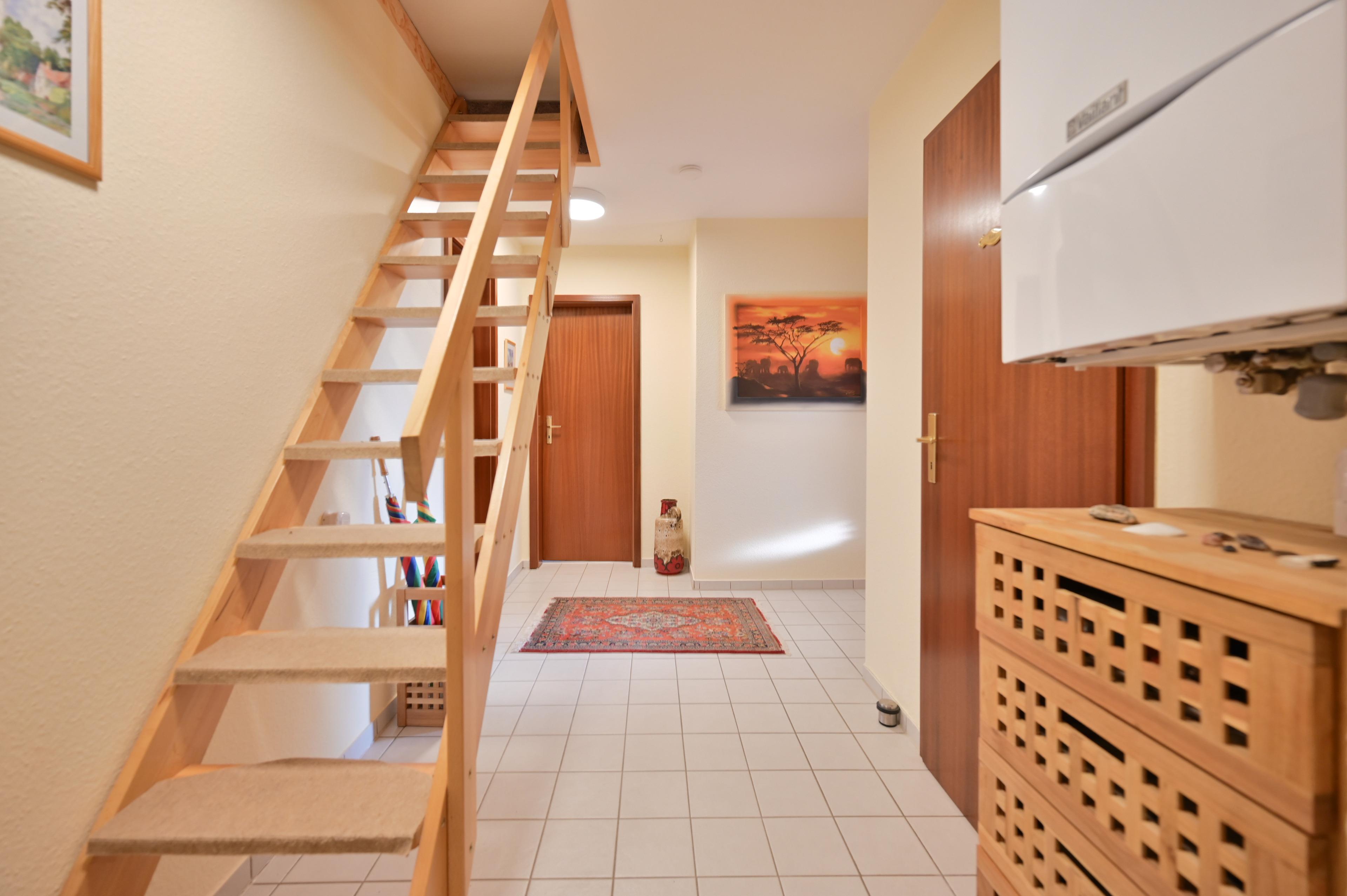 Die charmante Wohnung befindet sich in einer ruhigen Sackgasse mit eigenem Stellplatz, sowie einem Gartenschuppen zur Unterbringung von Fahrrädern, Bollerwagen, Strandspielzeug oder Ähnlichem.