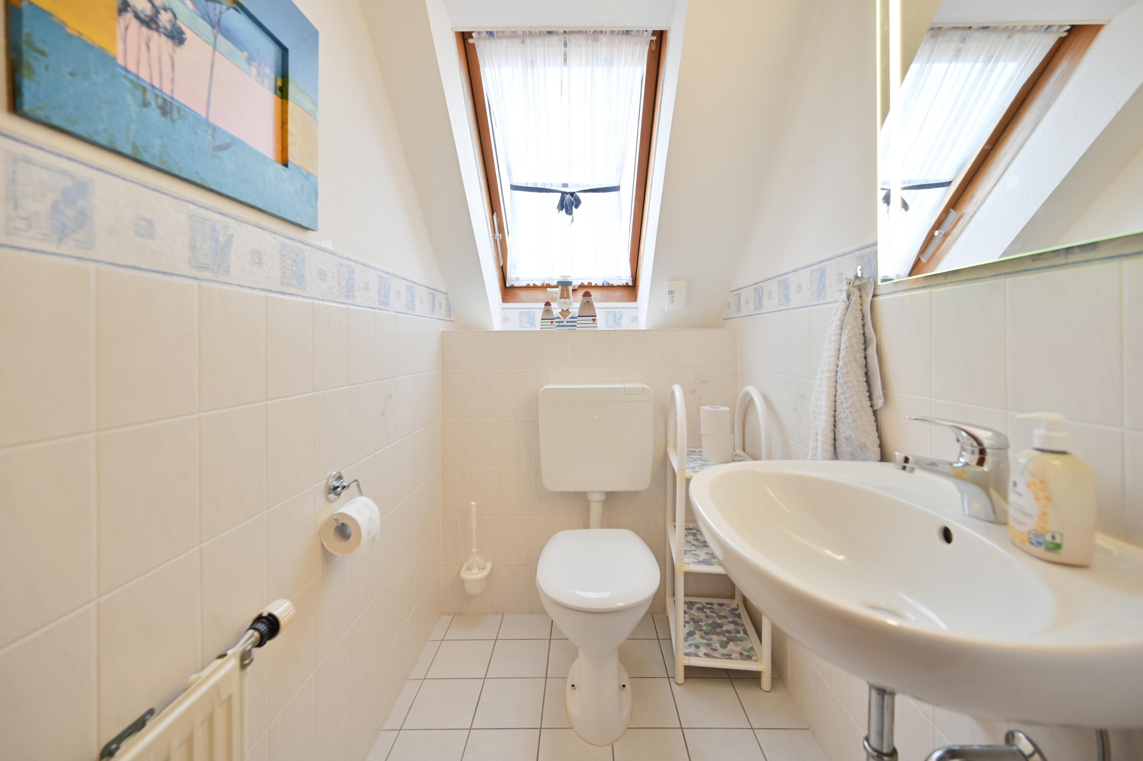 Zusätzlich gibt es ein Gäste-WC mit Tageslicht.