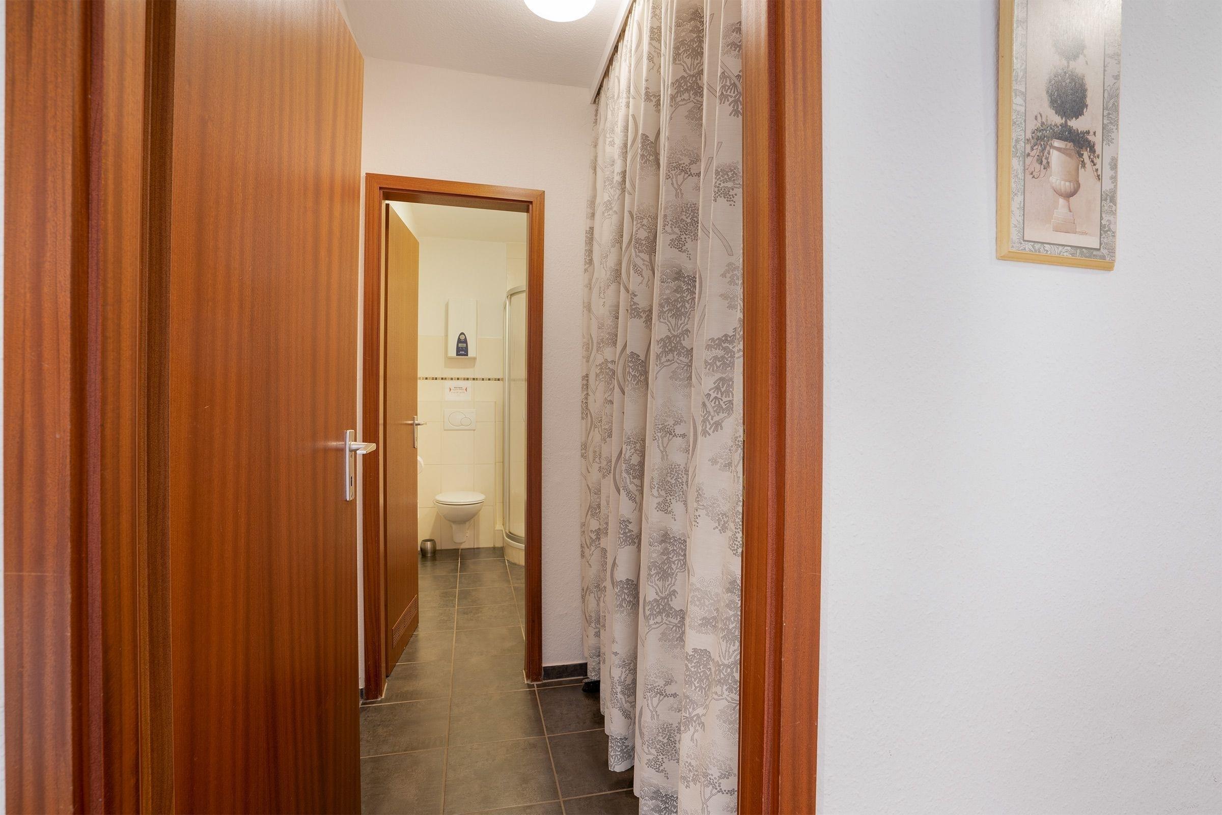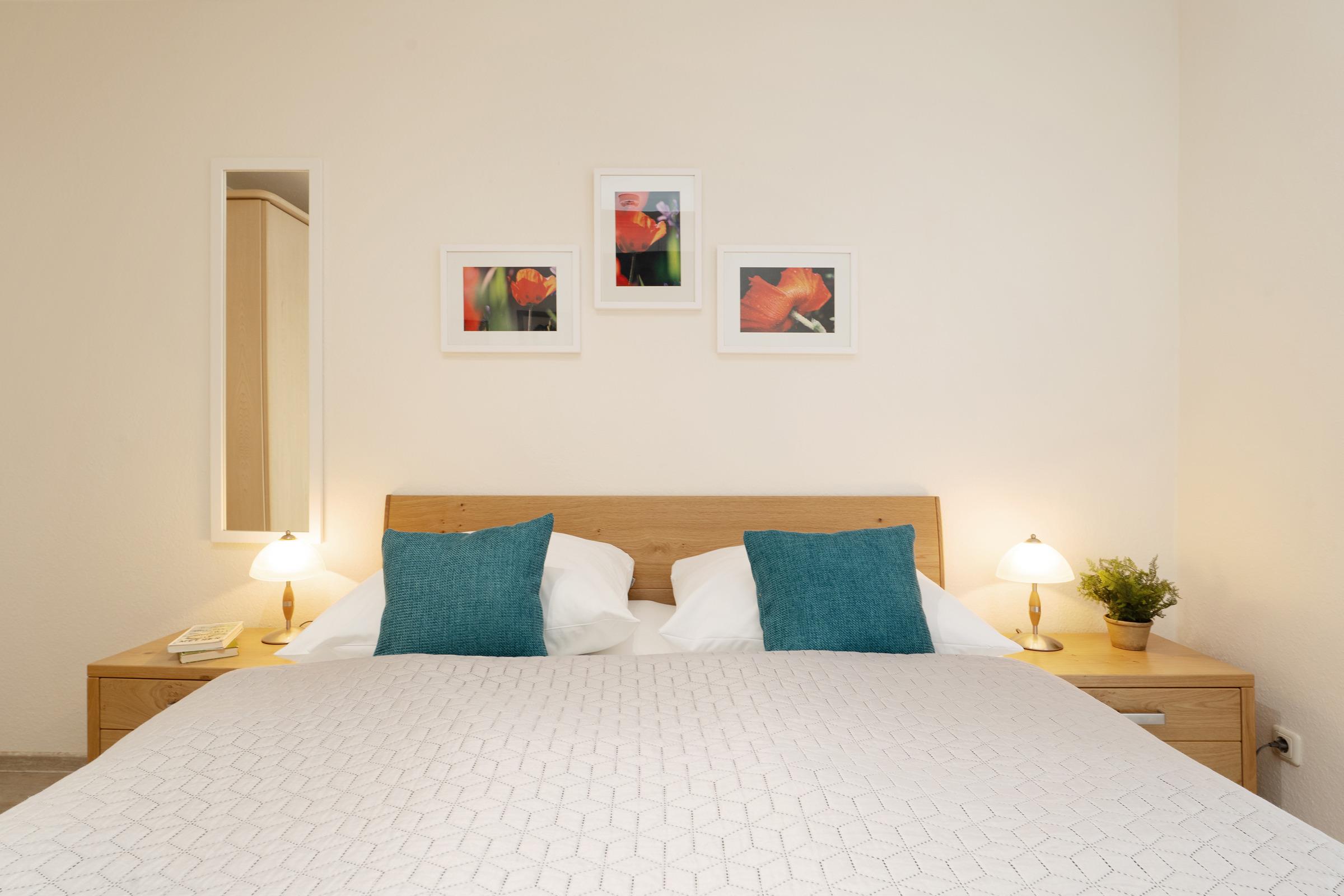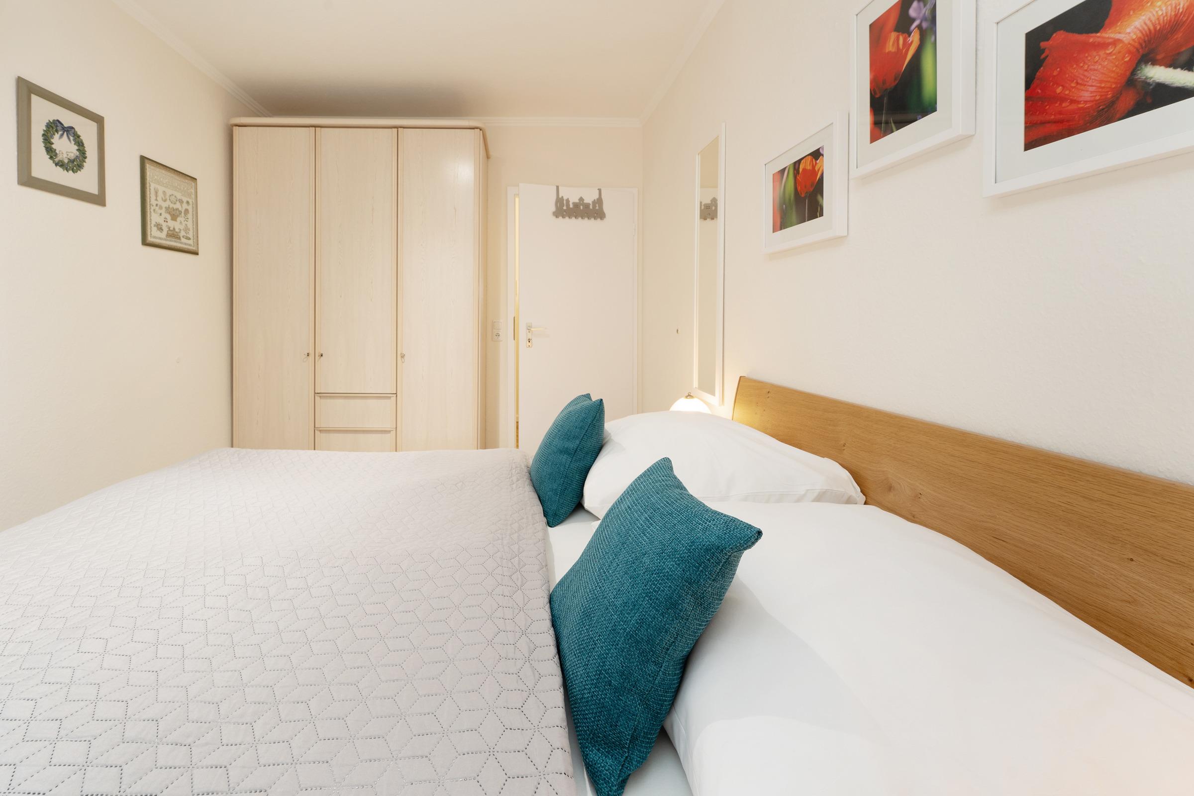 Schlafzimmer: 1 Doppelbett (2x 80x200 cm), TV, Kleiderschrank, Verdunkelung: elektr. Außenjalousien