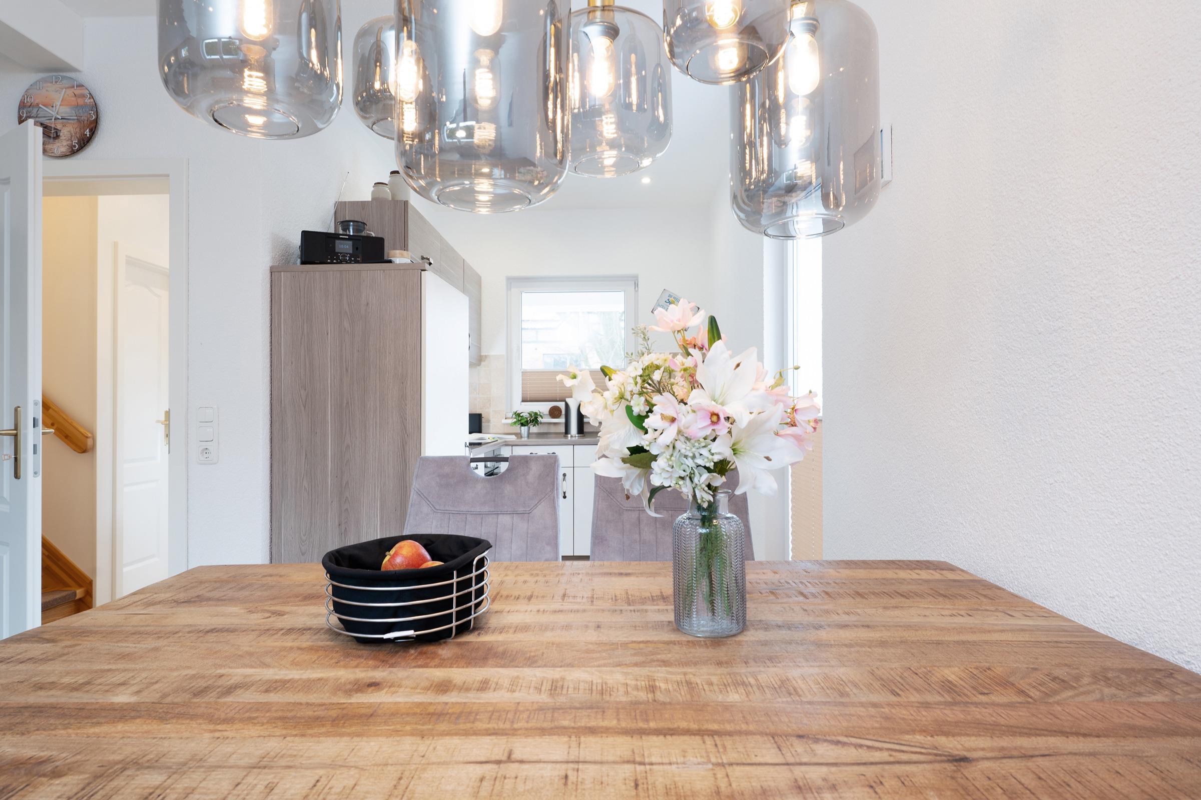 Der helle Wohnbereich mit gemütlicher Sofaecke, TV und einladendem Essplatz bildet das Herzstück des Hauses. Von hier aus gelangen Sie auf die beiden großzügigen Terrassen mit insgesamt ca. 38 m², ausgestattet mit hochwertigen Gartenmöbeln. Ob Frühstück in der Morgensonne, entspanntes Lesen oder ein geselliger Grillabend – hier finden Sie Ihren persönlichen Lieblingsplatz im Freien.