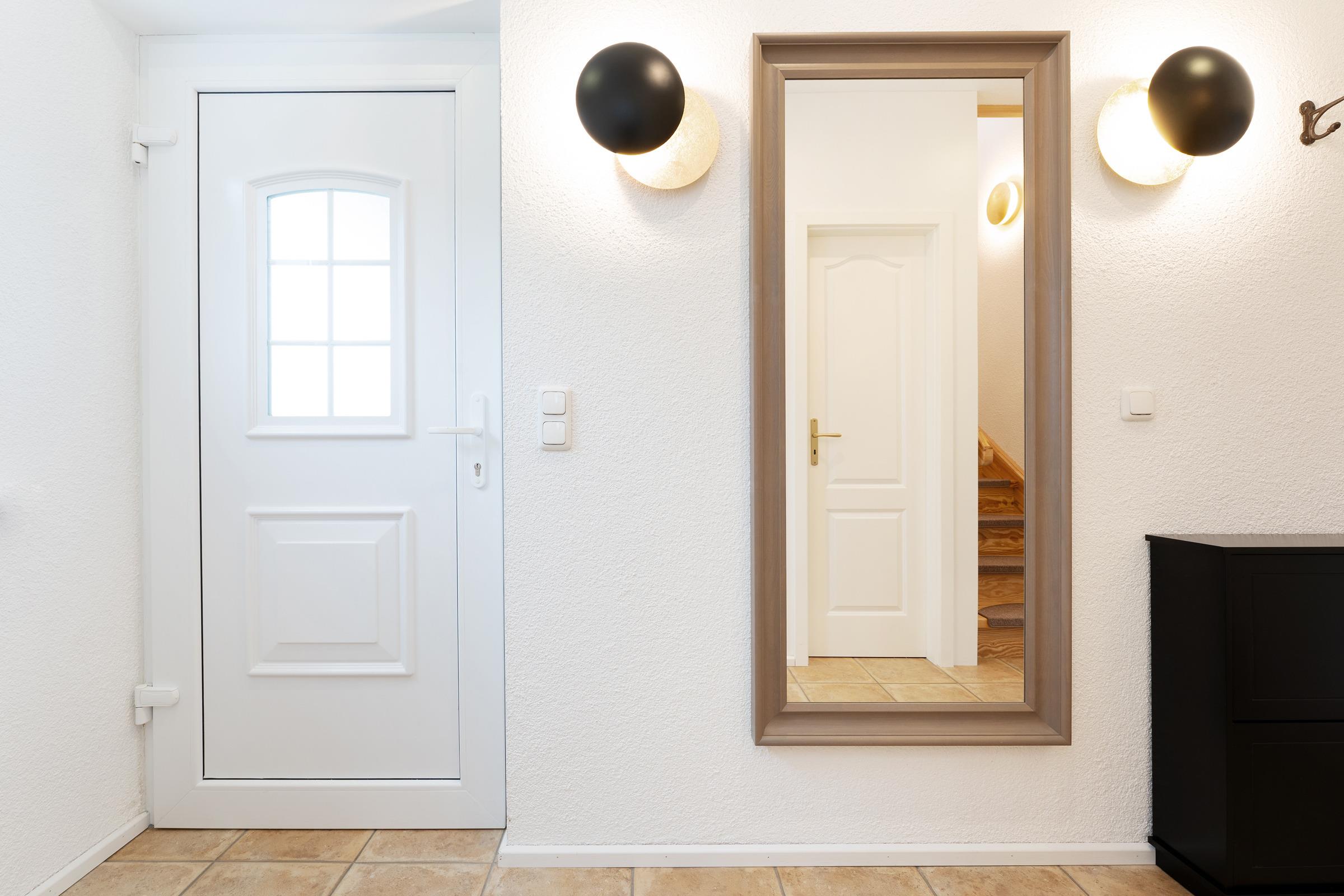 Das moderne Badezimmer verfügt über eine bodengleiche Dusche, WC, Waschbecken, Handtuchheizkörper, Fußbodenheizung und Föhn. Ergänzend stehen ein Gäste-WC im Erdgeschoss, WLAN, Fußbodenheizung im gesamten Haus, Waschmaschine, Fahrradabstellplatz sowie ein reservierter PKW-Außenstellplatz zur Verfügung.