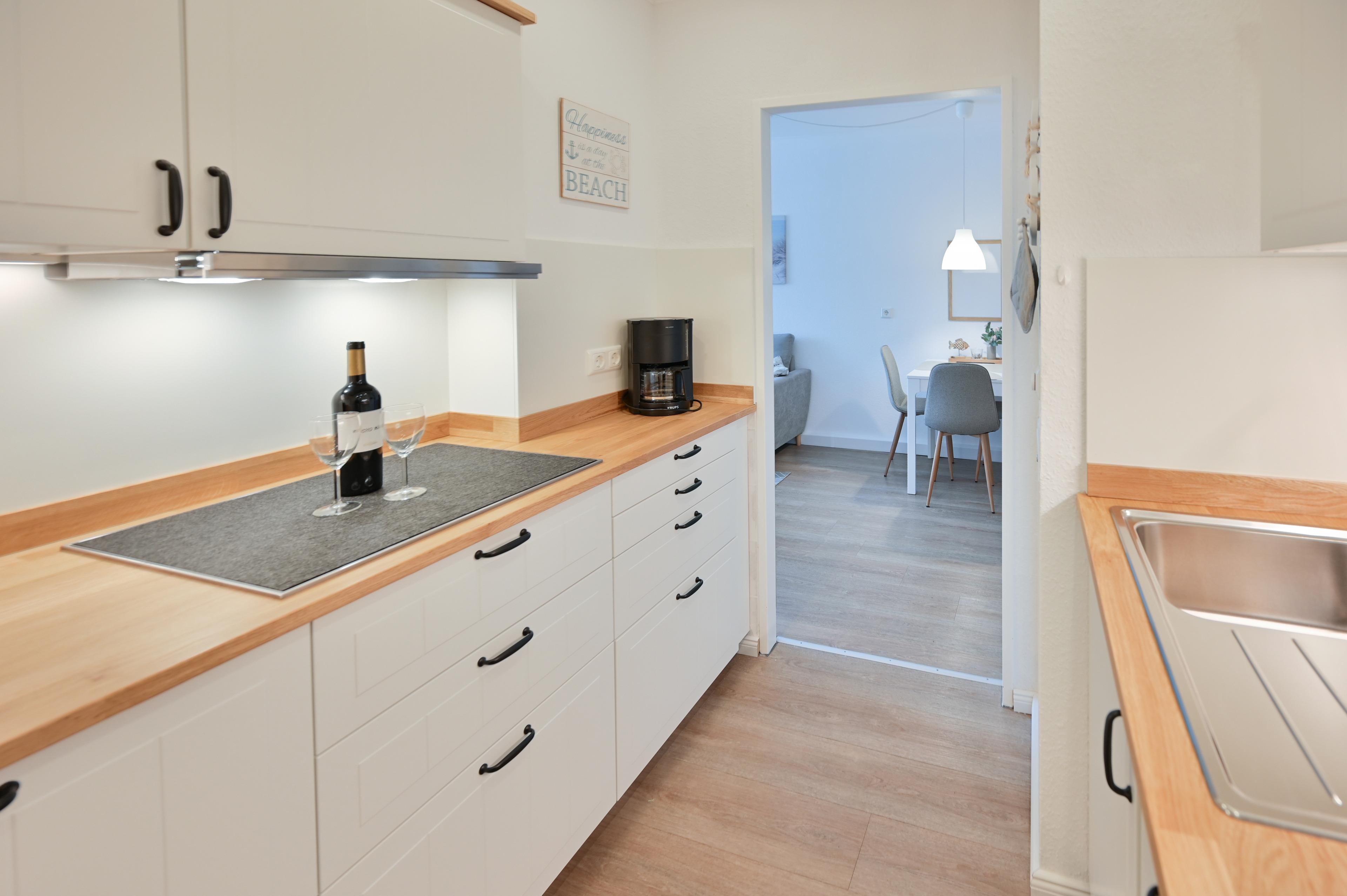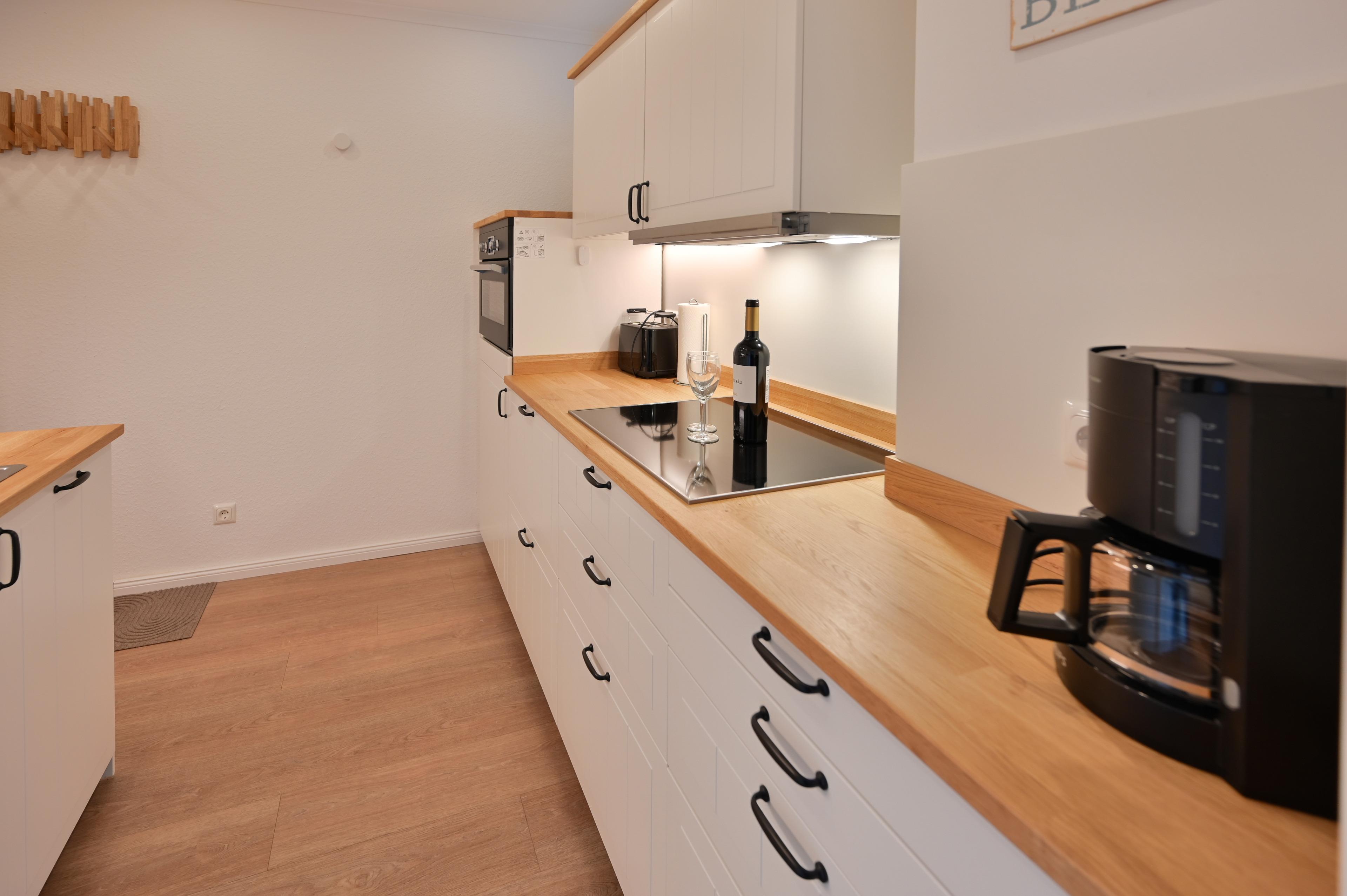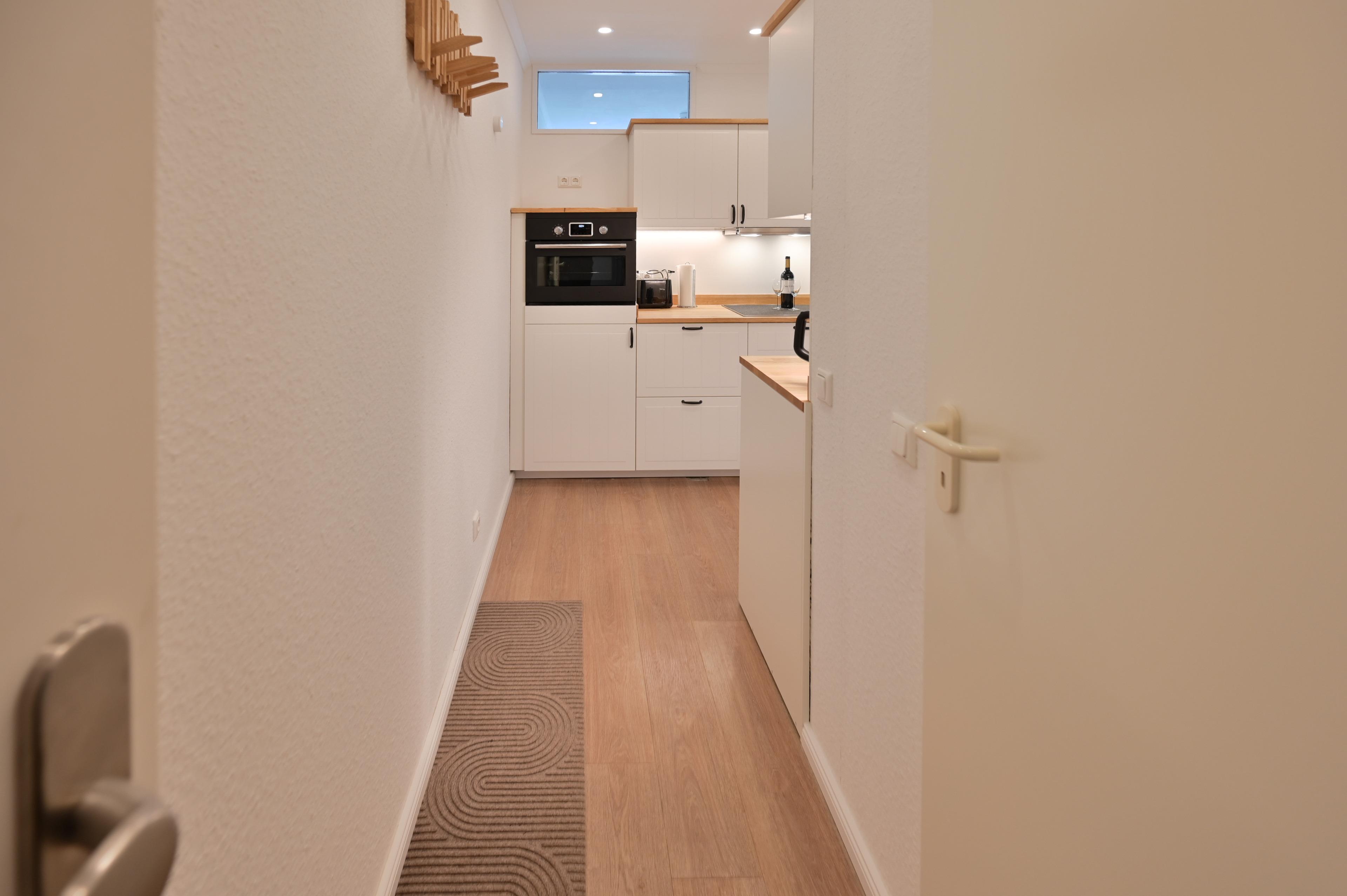 Die im Flur integrierte moderne Einbauküche ist bestens ausgestattet und lässt keine Wünsche offen.
