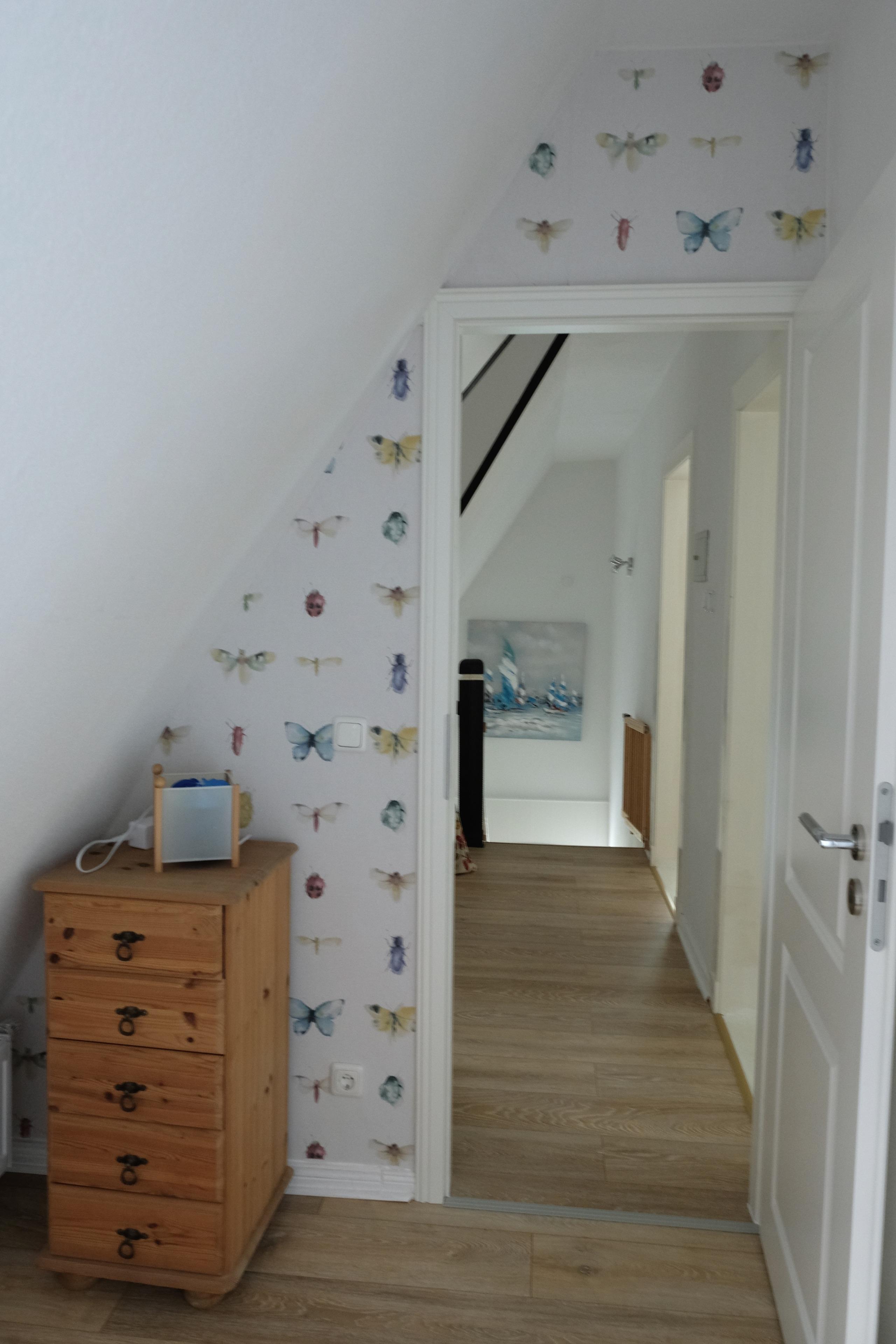 OG: Ein heller, großer Flur nimmt Sie in Empfang. Von hier gelangen Sie in das 2. Tageslichtbad mit begehbarer Dusche mit Sitzbank, WC und Waschtisch und in die weiteren Schlafräume. Das 2. Schlafzimmer ist ausgestattet mit einem bequemen Doppelbett, Nachttischen, Leselampen, Kleiderspiegelschrank, Kommode, Schlafsessel, Sitzgelegenheiten und ist vollständig abdunkelbar.