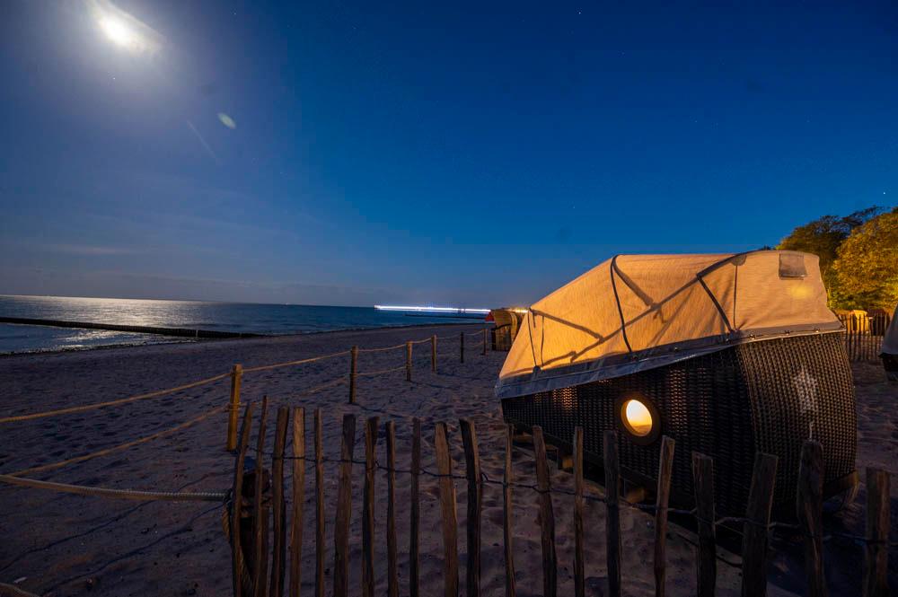 Erleben Sie eine einzigartige Übernachtung im Schlafstrandkorb mit Blick auf die Ostsee in Kellenhusen.