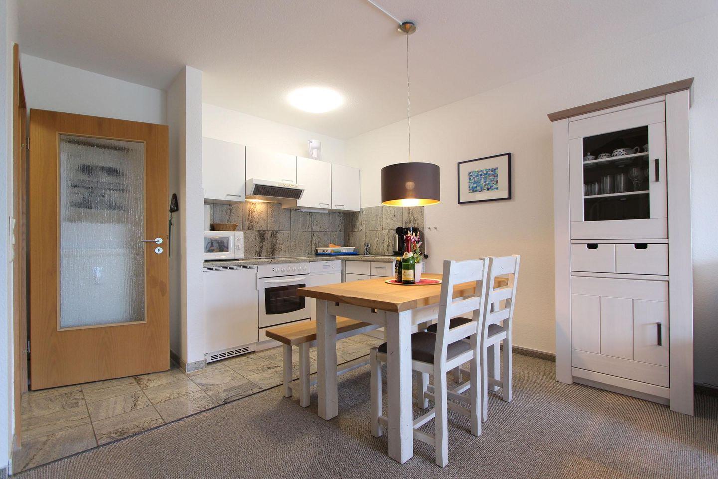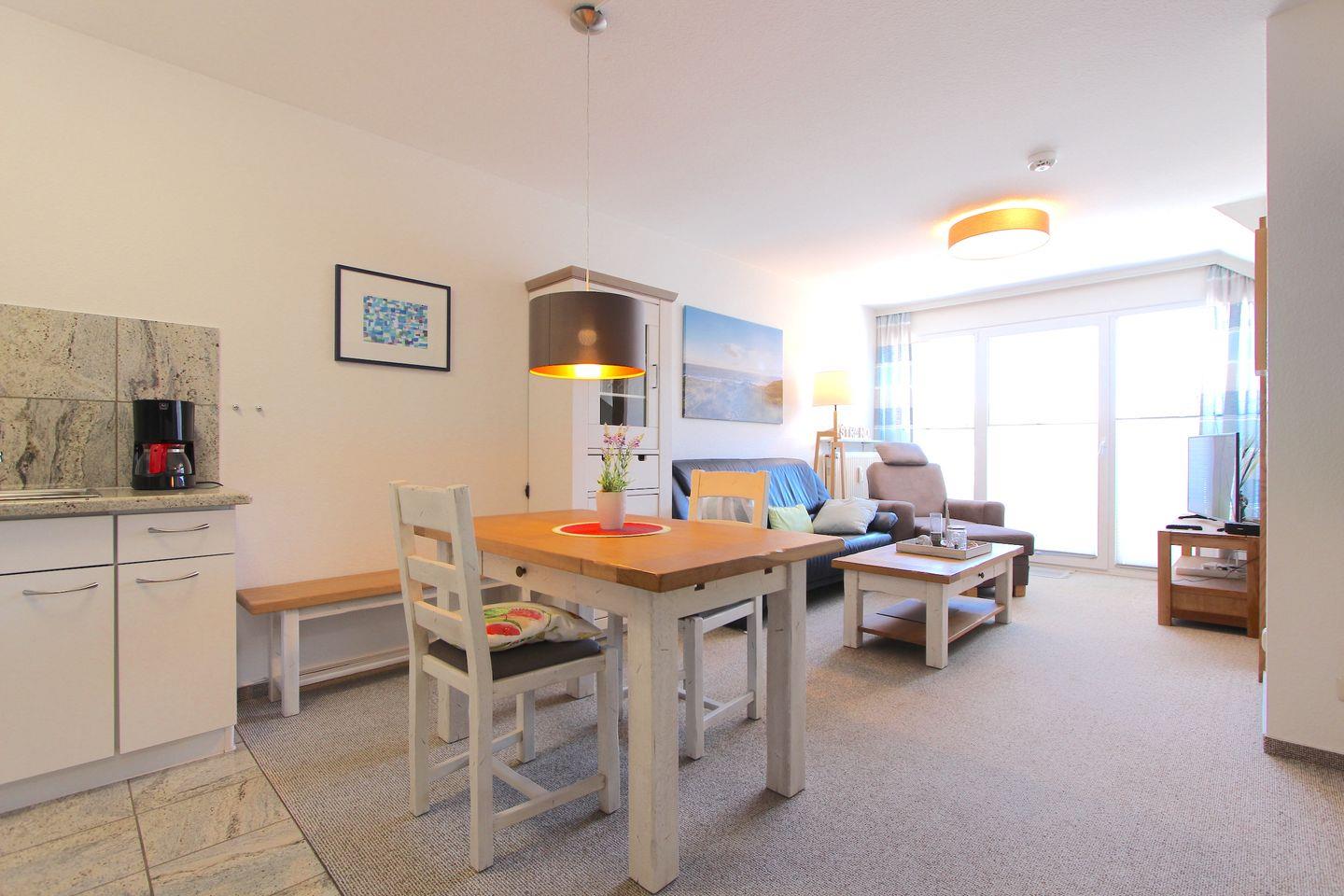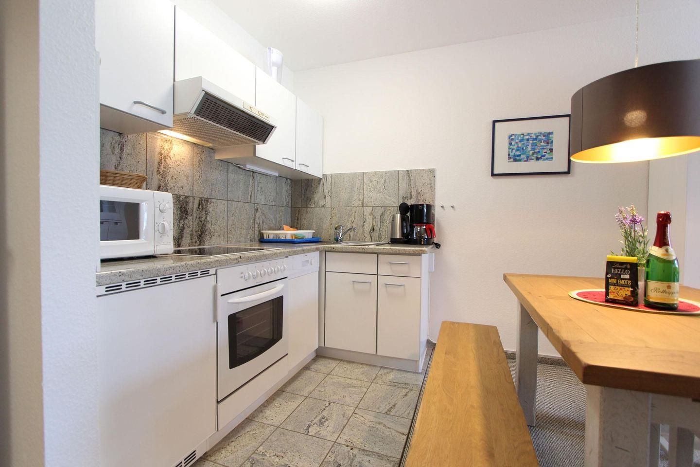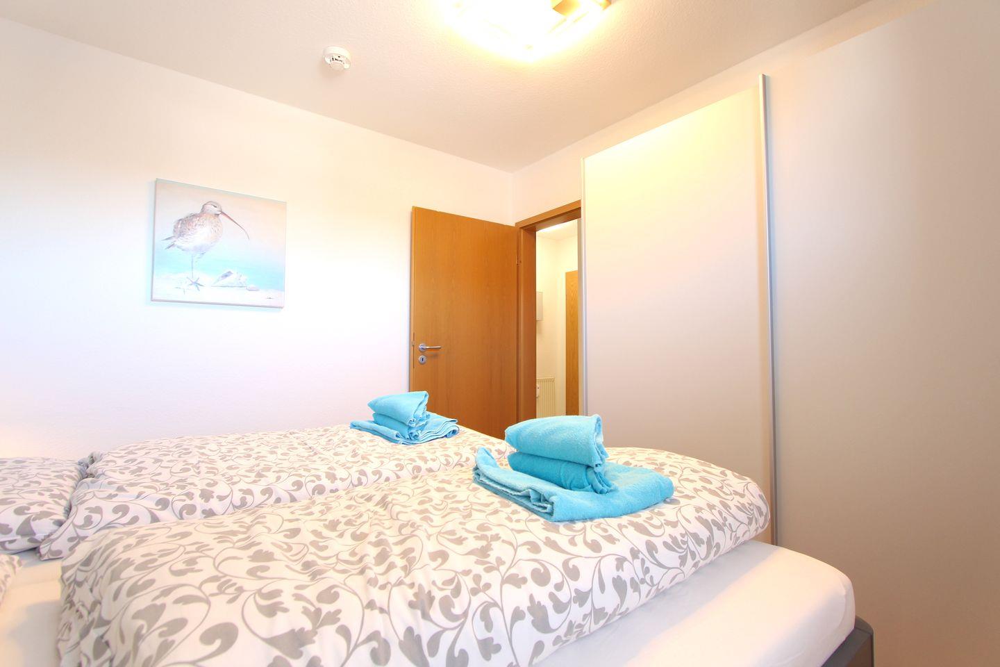 Im Herzen von Kellenhusen liegt die Wohnresidenz. In dieser Wohnanlage befindet sich auch die Wohnung 11, welche mit 55 qm im zweiten Obergeschoss liegt. Das Wohnzimmer ist mit einer großzügigen Sofaecke und einem Sessel eingerichtet. Außerdem befindet sich hier der Essbereich. Die Küche ist separat und mit einem Geschirrspüler, einer Mikrowelle und einem Backofen ausgestattet. Die zwei separaten Schlafzimmer sind beide sehr gemütlich und schön gestaltet. Im größeren Zimmer steht ein Doppelbett (2 Matratzen á 0,90x2,00m) und ein Kleiderschrank. Das zweite Zimmer ist bestens für zwei Kinder ausgestattet und verfügt über zwei Einzelbetten (0,90x1,90m). Das Badezimmer der Wohnung ist hell gehalten und mit einem Fenster und einer Duschkabine sehr gut ausgestattet. Der schöne sonnige Balkon ist Richtung Süd-Osten gelegen. Bei dieser Wohnung liegt das schöne so nah, denn die Ostsee erreicht man schon innerhalb von 2 Gehminuten. Für mitgebrachte Fahrräder ist im Keller ein Abstellraum vorhanden. Sollte das Reisegepäck so gering wie möglich ausfallen, dann ist ein Wäschepaket für den Aufenthalt in Kellenhusen gegen Gebühr einfach buchbar ebenso stehen im Haus Waschmaschine und Trockner gebührenpflichtig zur Verfügung.