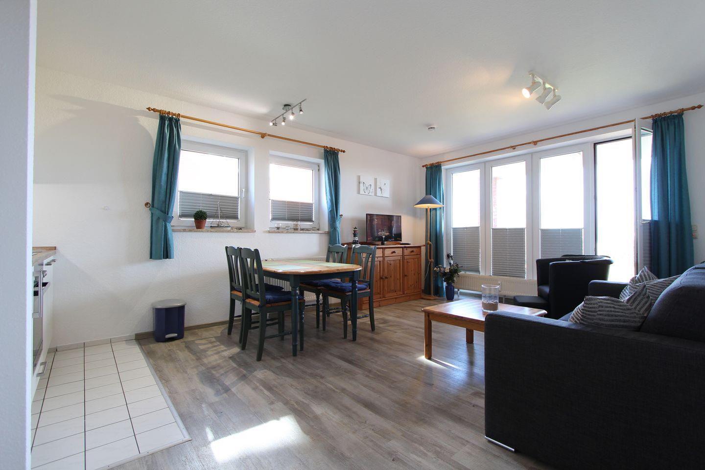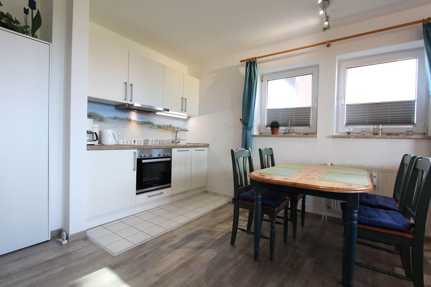 Die ca. 50 qm große Erdgeschosswohnung im Kaiserhof bietet mit großer windgeschützter Terrasse Platz für max. 4 Personen. Das Wohnzimmer ist mit einem Schlafsofa (1,40x2,00m) und einem großen Flachbild-TV eingerichtet und direkt offen zum Essbereich und der Küche. Die Küche ist mit Ceranfeld, Geschirrspüler, Kühlschrank und vielen nützlichen Geräten ausgestattet. Das separate Schlafzimmer ist mit einem Doppelbett (2 Matratzen á 0,90x2,00m) und einem großzügigen Kleiderschrank eingerichtet. Im schicken modernen Duschbadezimmer ist ebenfalls alles vorhanden was man benötigt. Die Terrasse mit Blick Richtung Ostsee ist bestens zum entspannen in den Abendstunden geeignet. Mitgebrachte Fahrräder können im Abstellraum untergebracht werden. Die Wohnung ist direkt hinter dem Deich gelegen und so ist man dann auch in Windeseile am Strand. Hierfür braucht man nichtmal eine Minute. Auch dem Urlaub mit dem Haustier steht generell nichts im Wege, denn nach Rücksprache und gegen Aufpreis sind kleinere Haustiere gestattet. Sollte das Reisegepäck so gering wie möglich ausfallen, dann ist ein Wäschepaket für den Aufenthalt in Kellenhusen gegen Gebühr einfach buchbar. Waschmaschine und ein Trockner (Münzautomat) stehen im Hause gegen Gebühr zur Verfügung.