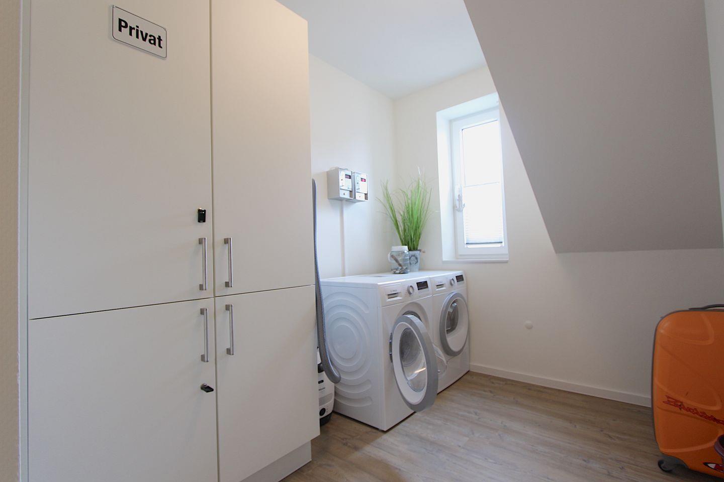 Eine Waschmaschine und Trockner stehen gegen Gebühr (je 1/2 Stunde 1 €) im wohnungseigenen Hauswirtschaftsraum zur Verfügung.