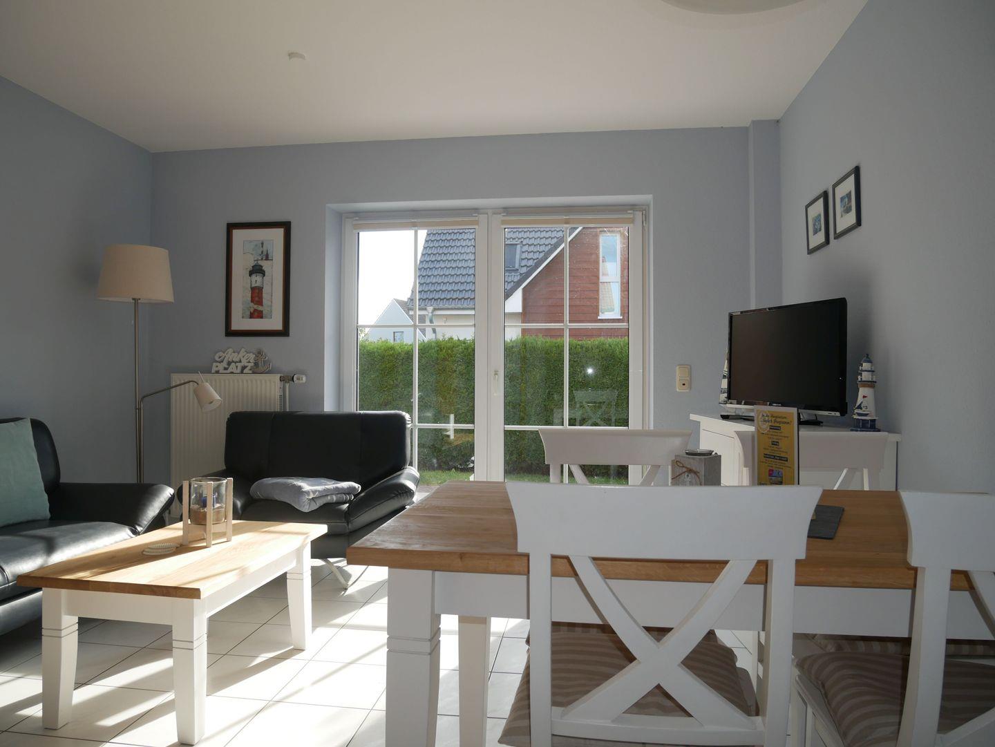 - Wohn-, Esszimmer mit Sitzecke und TV, direkter Zugang zu Terrasse und Garten in Südlage