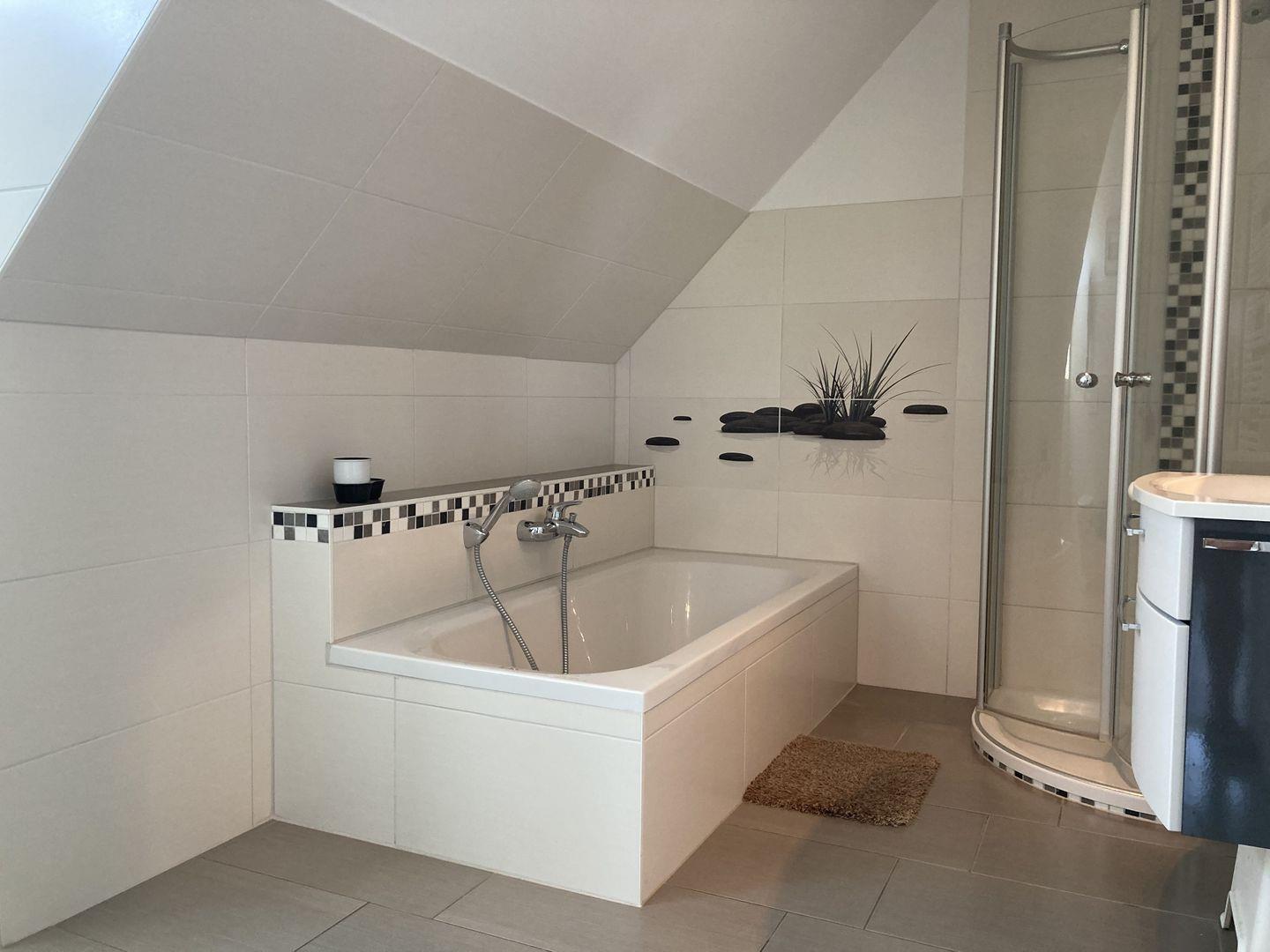 - Badezimmer mit Badewanne, Dusche und WC