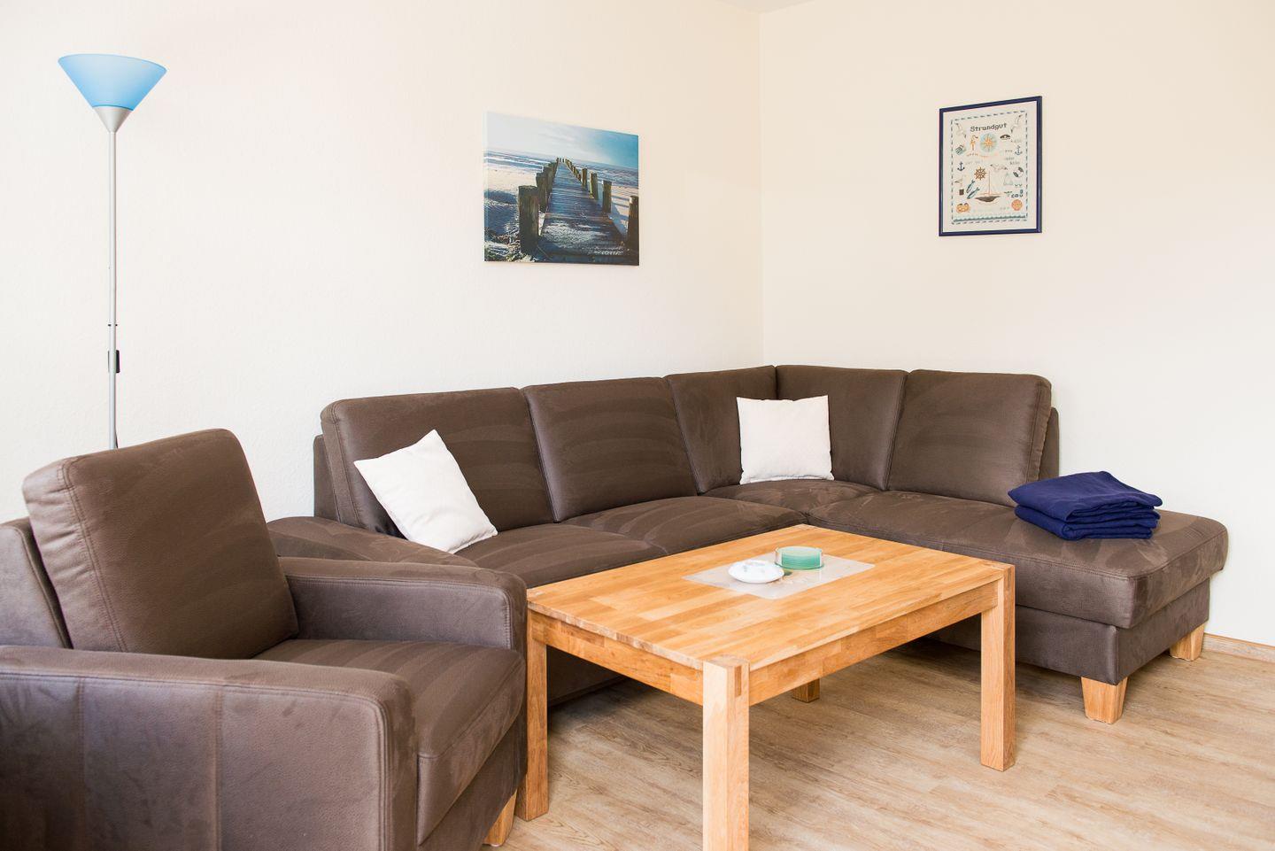 Ein Wohnzimmer, 2 Schlafzimmer jeweils mit Doppelbett und eins davon mit zusätzlichen Kinderbett und zwei Badezimmer - ein Duschbad und ein Vollbad - sorgen für entspannte Urlaubstage.