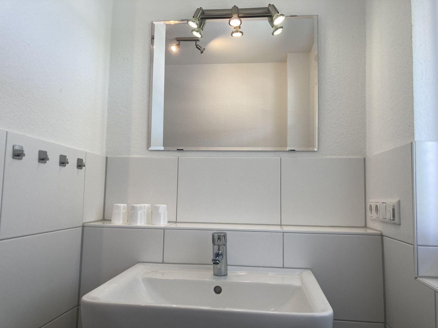 - tageslichthelles Badezimmer mit Dusche, WC und Waschmaschine