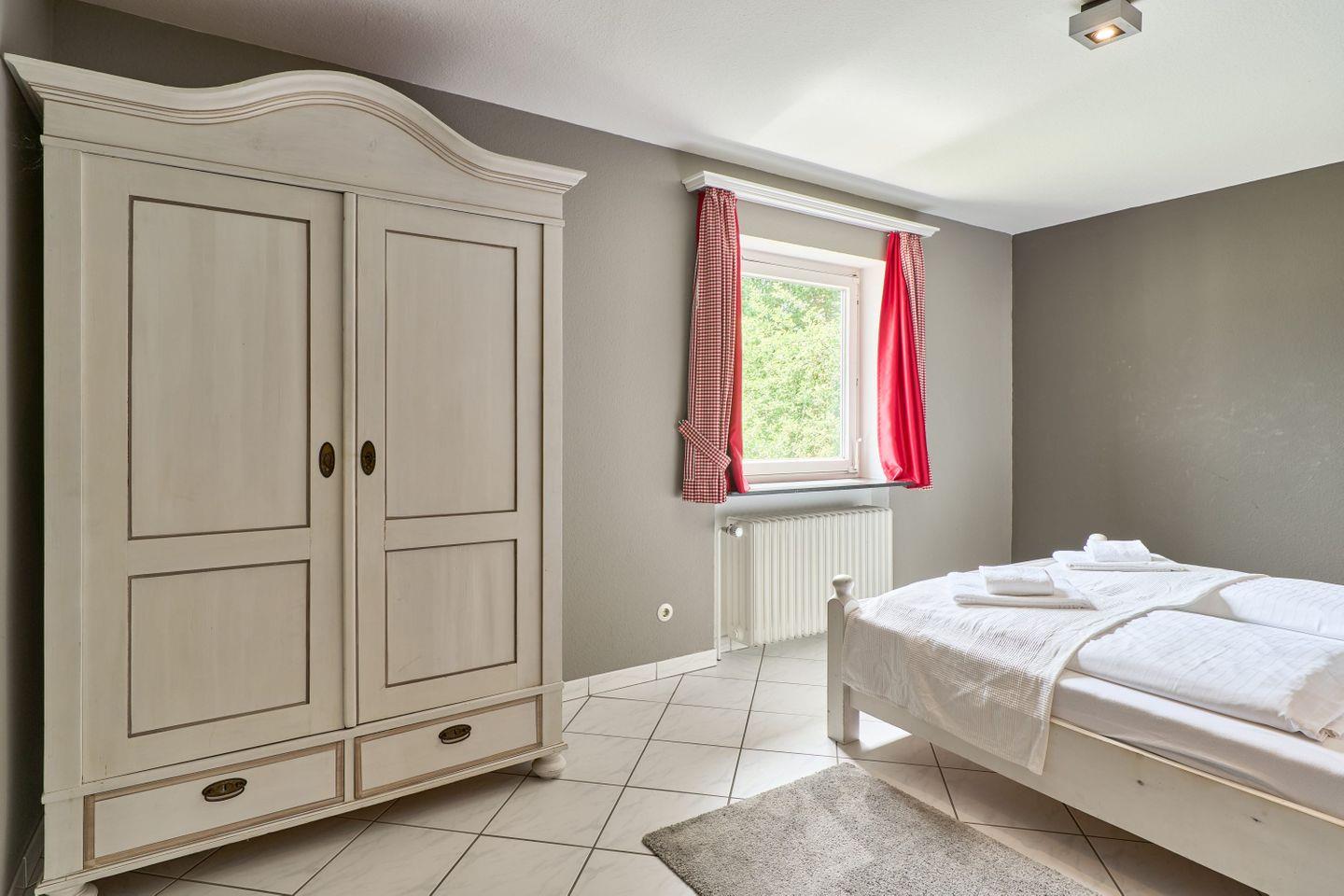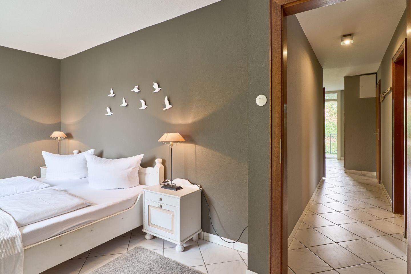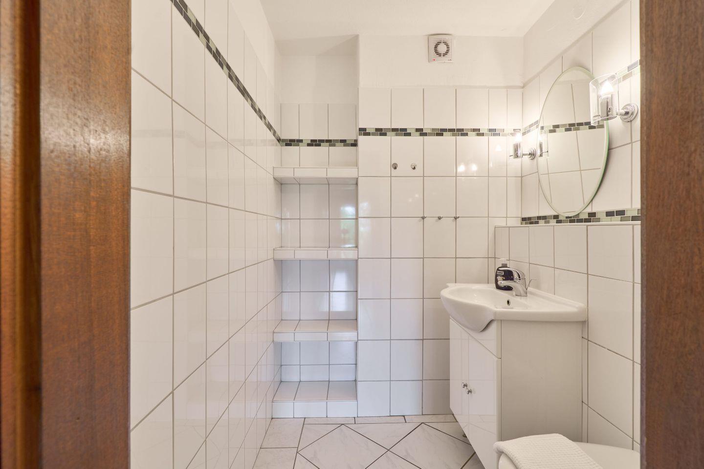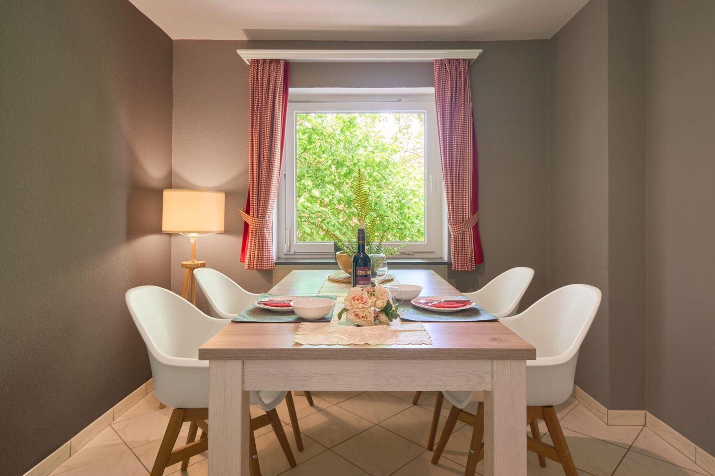 Die geschlossene Küche ist mit hochwertigen, modernen Geräten ausgestattet. Hier finden Sie unter anderem einen Cerankochfeld-Herd, eine Spülmaschine, eine Mikrowelle sowie einen Kühlschrank. Auch weitere Küchenutensilien wie Toaster, Wasserkocher und Kaffeemaschine sind vorhanden, sodass Sie Ihre Lieblingsgerichte problemlos zubereiten können. Für zusätzliche Bequemlichkeit sorgt die Gemeinschaftsnutzung von Waschmaschine und Trockner, die im Haus zur Verfügung stehen.