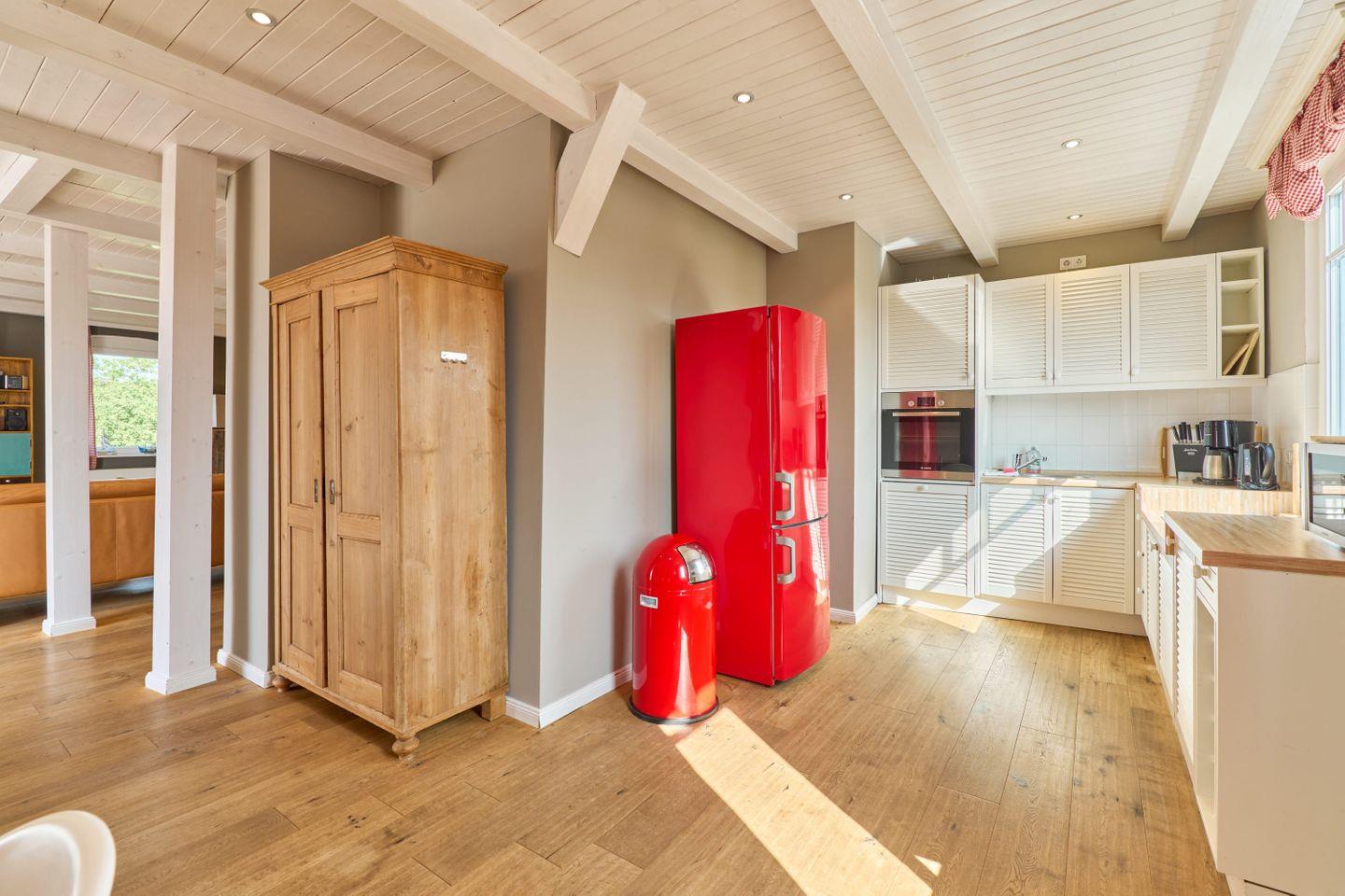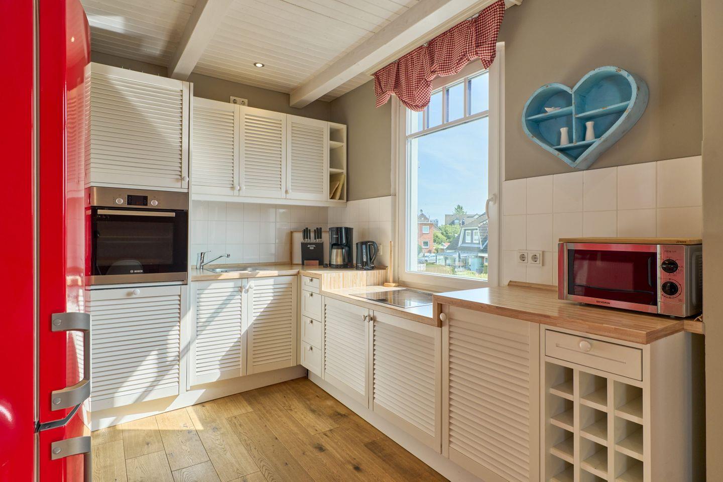 Die geschlossene Küche ist mit den neuesten Geräten ausgestattet, darunter ein Cerankochfeld, ein Backofen, eine Mikrowelle und eine Spülmaschine. Diese voll ausgestattete Küche ermöglicht es Ihnen, kulinarische Köstlichkeiten zuzubereiten und dabei Ihren Gästen Platz am Esstisch zu bieten – ideal für gemeinsame Mahlzeiten und gesellige Runden. Die Küchenutensilien, das Geschirr und Besteck stehen Ihnen ebenfalls zur Verfügung, sodass Sie beim Kochen keine Abstriche machen müssen.