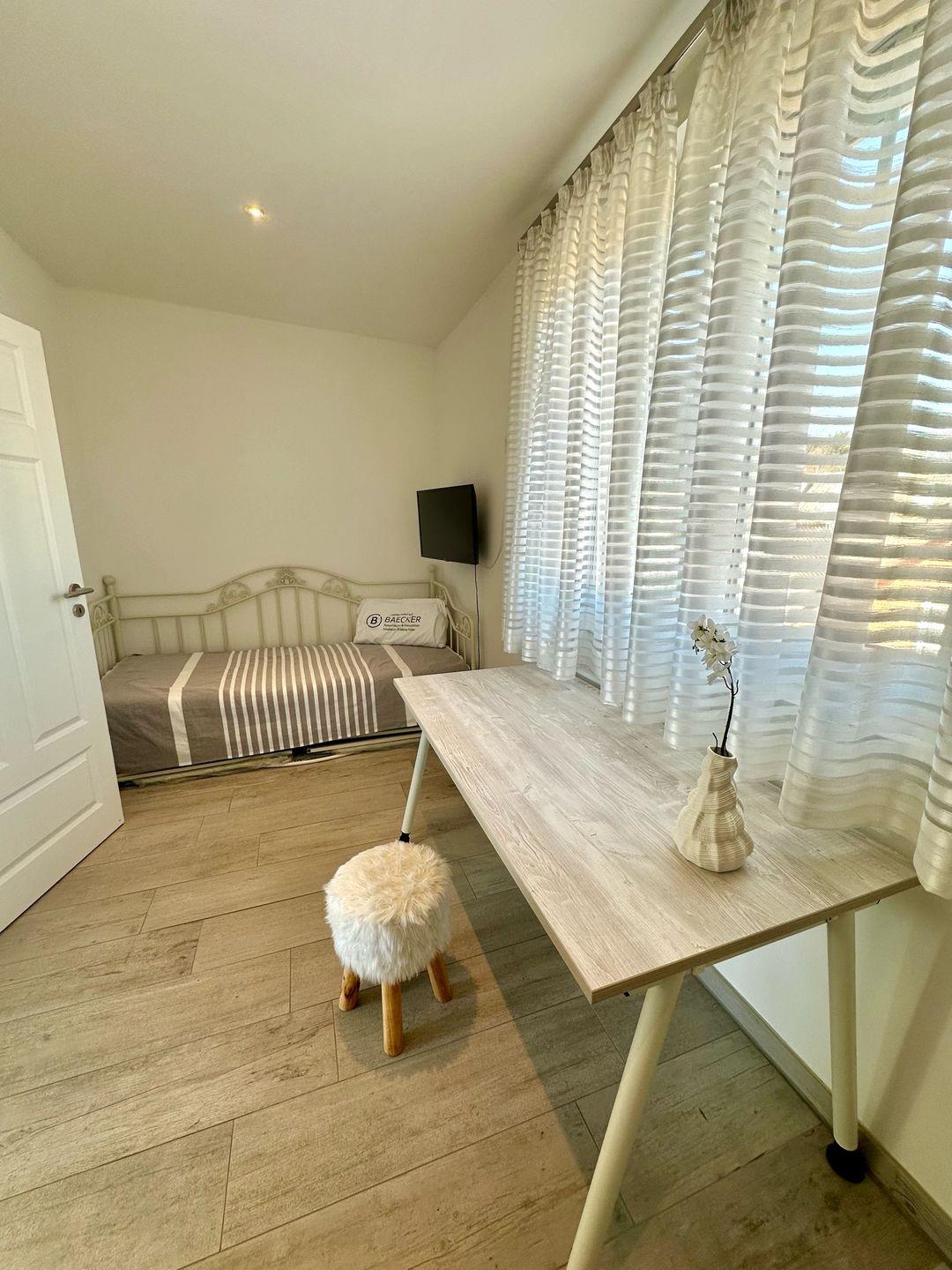 Die Ferienwohnung erstreckt sich über großzügige 70 m² und bietet mit zwei Schlafzimmern Platz für bis zu drei Personen. Jedes Schlafzimmer mit TV-Gerät ist liebevoll ausgestattet, um Ihnen eine erholsame Nachtruhe zu garantieren. Alle Betten haben die Abmessung 90 x200 cm. Das helle und einladende Wohnzimmer lädt zu entspannten Stunden ein und und hat selbstverständlich einen Smart-TV. Die bodengleiche Dusche sowie der Rainshower-Duschkopf im modernen Badezimmer sorgt für zusätzlichen Komfort und Barrierefreiheit.