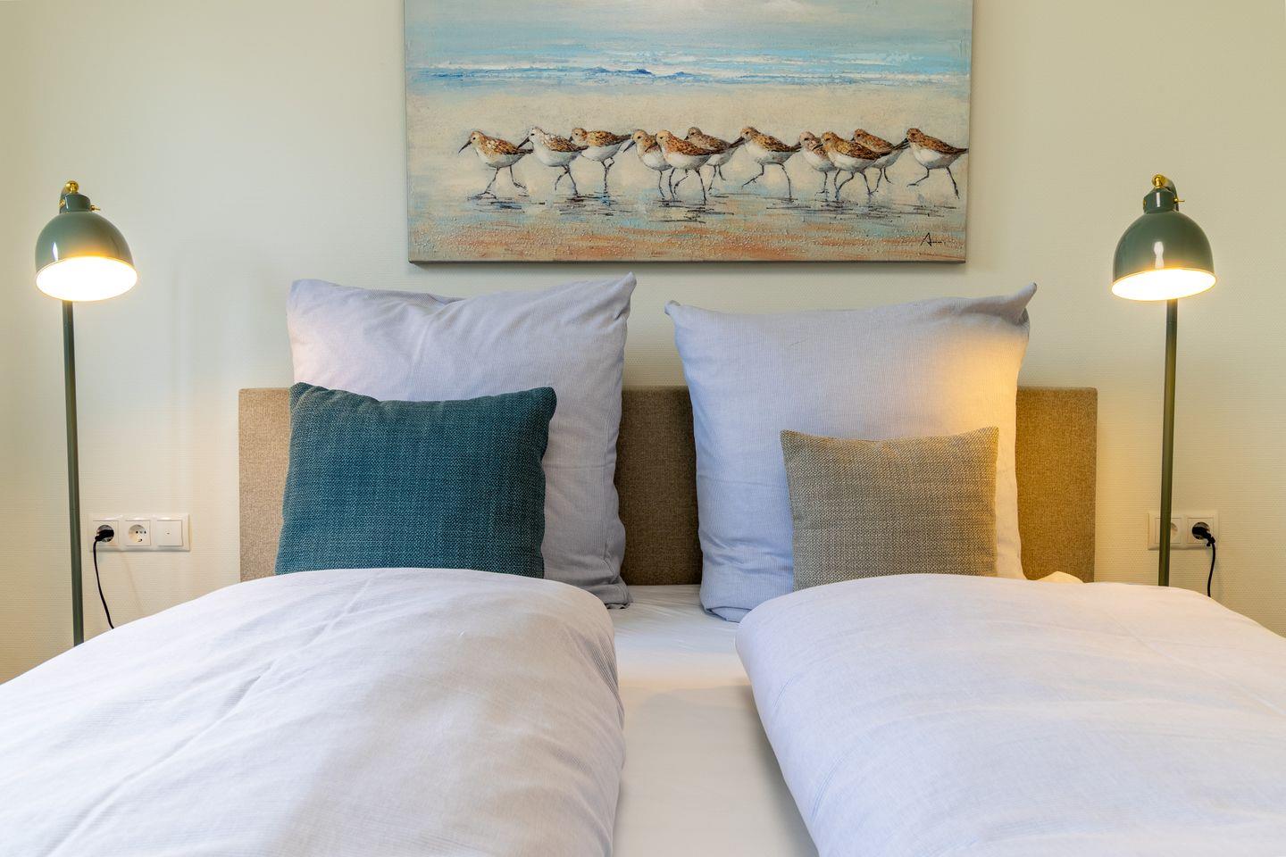 Zwei Schlafzimmer mit hochwertigen Boxspringbetten (unterschiedliche Härtegrade 2 und 3) bieten besten Schlafkomfort. Beide Räume sind stilvoll eingerichtet und eignen sich sowohl für Paare als auch für Familien mit Kindern.