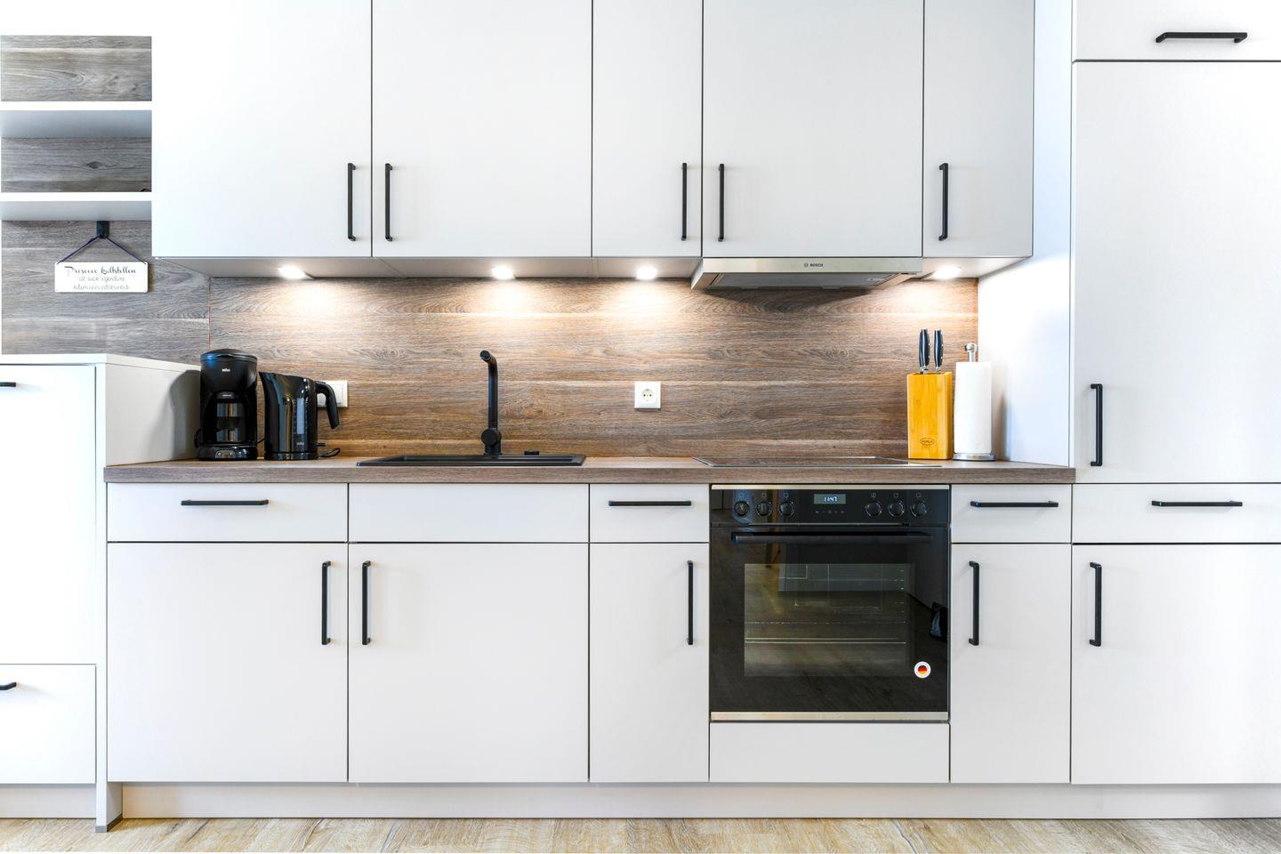 Dank großzügigem Schnitt, separatem Abstellraum und eigener Waschmaschine ist StrandGut auch für längere Aufenthalte bestens geeignet – ob mit Familie, Freunden oder zu zweit mit viel Platz.