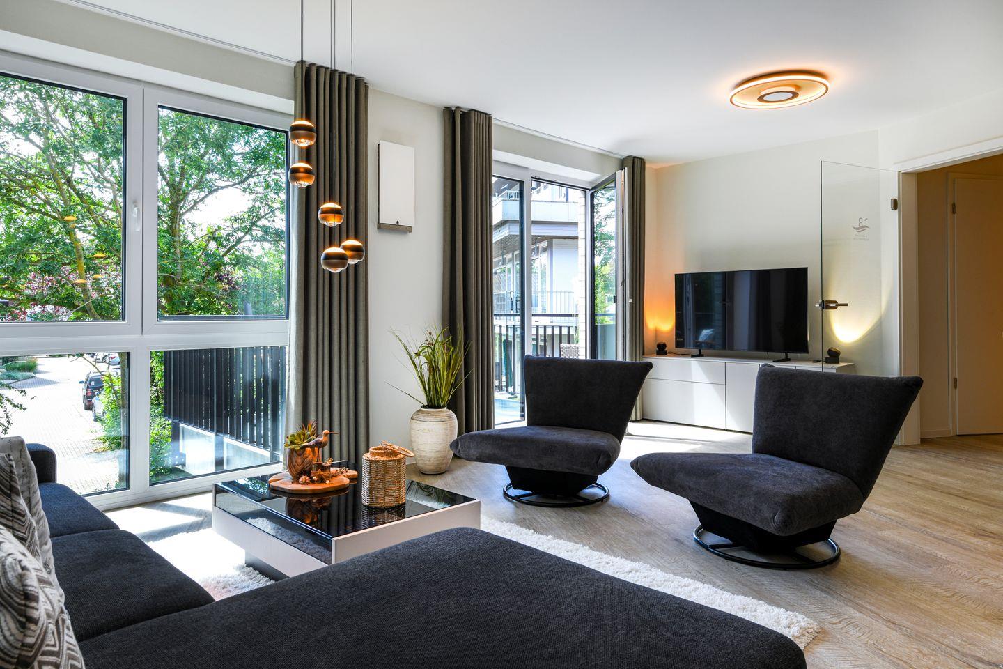 Moderne Ferienwohnung Wellenzauber mit Sauna, Balkon und Strandnähe für erholsame Ostseeurlaube.