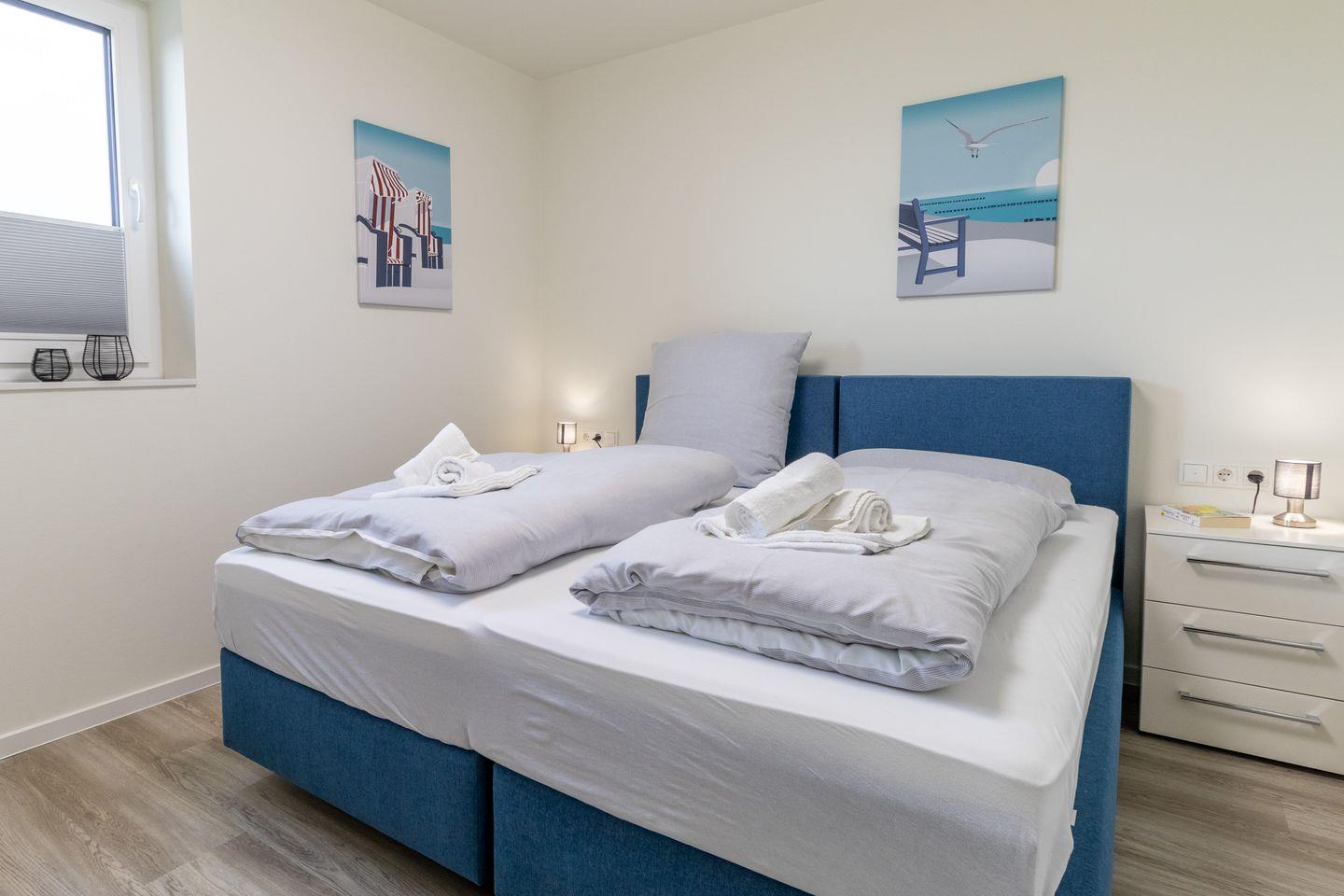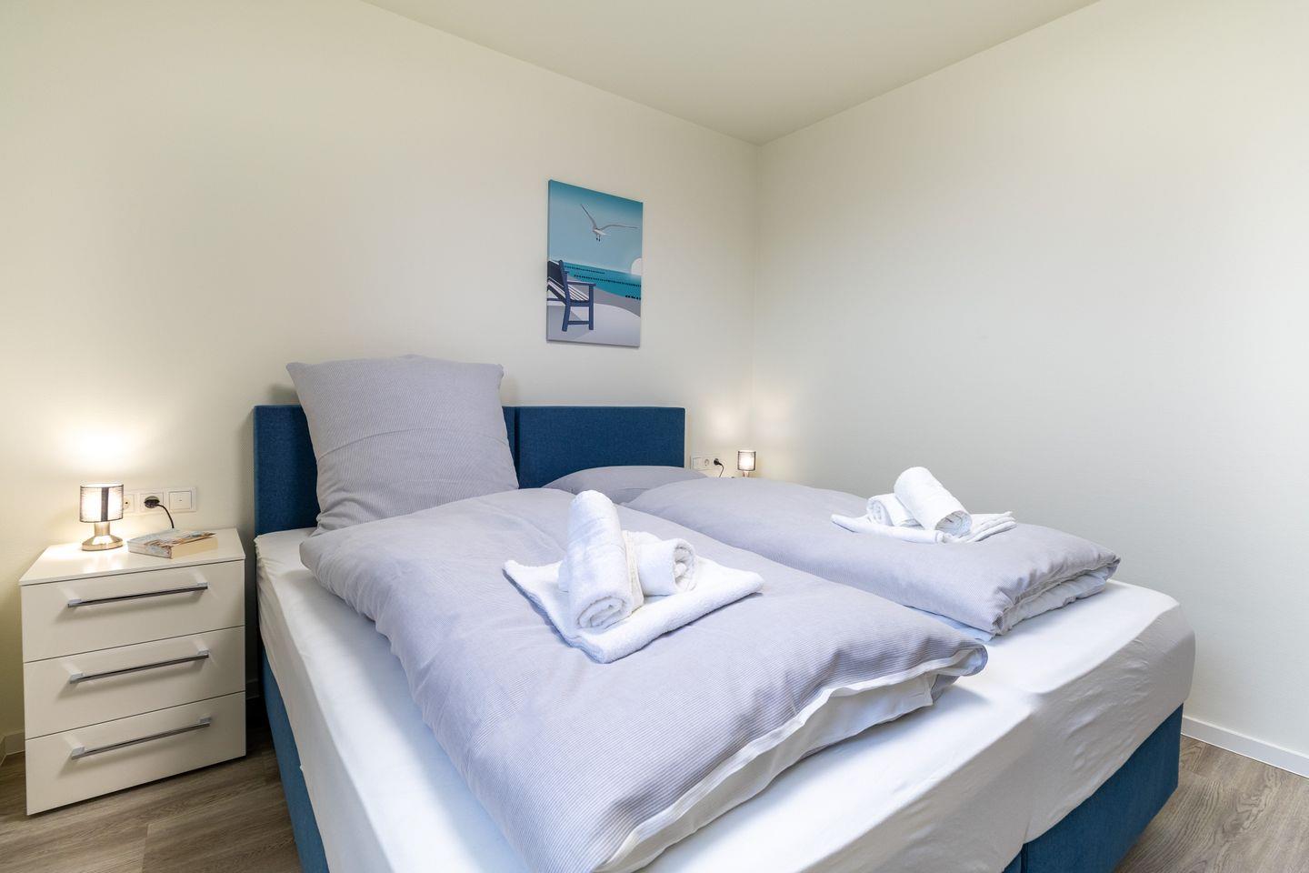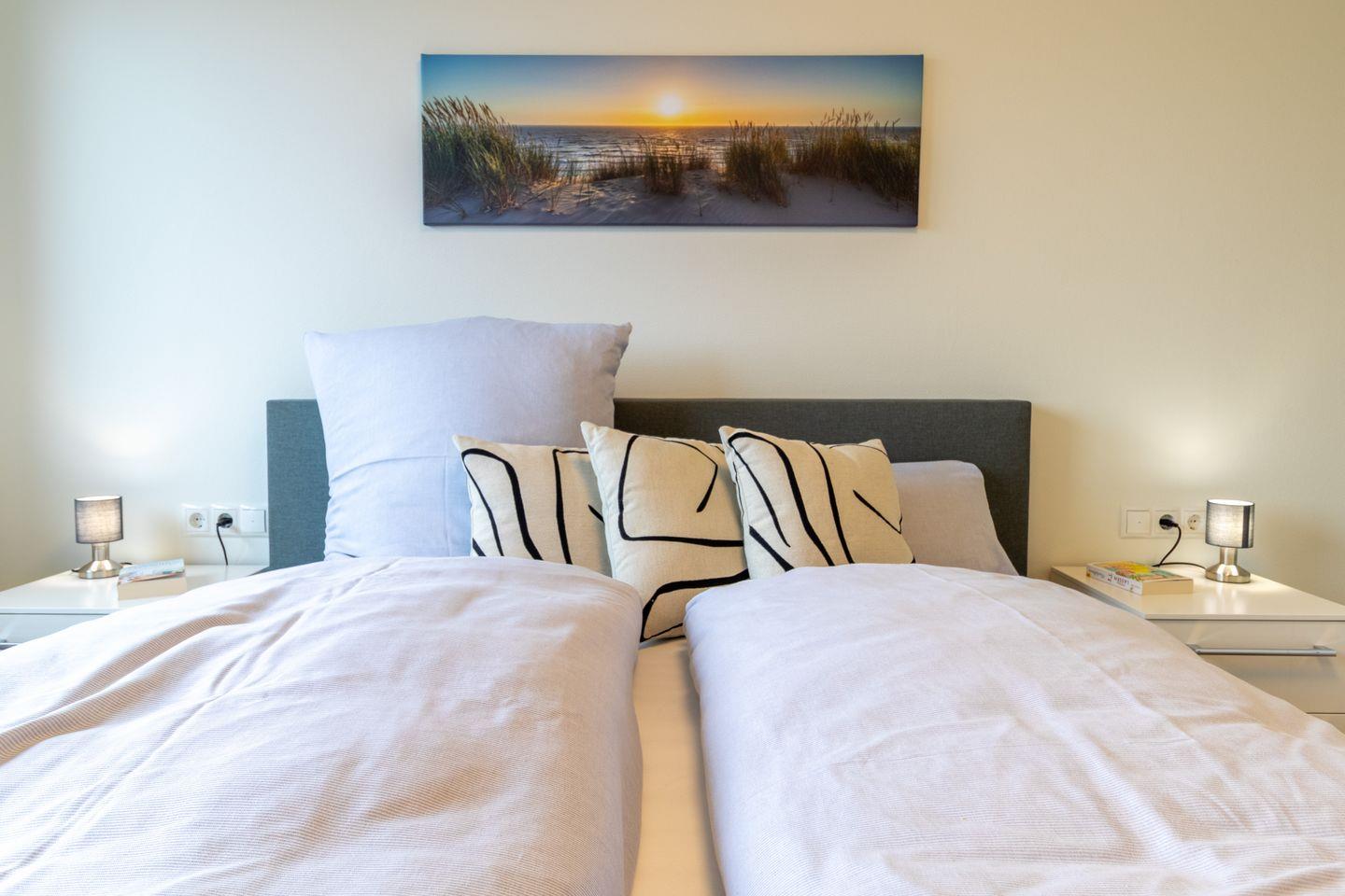 Zwei Schlafzimmer bieten dir besten Schlafkomfort: Das Hauptschlafzimmer ist mit einem großen Doppel-Boxspringbett (180?×?200?cm) ausgestattet und bietet Dir direkten Zugang zur Dachterrasse. Im zweiten Schlafzimmer findest du zwei Einzelbetten (je 90?×?200?cm) – perfekt für Kinder oder Freunde. Beide Räume sind stilvoll eingerichtet und eignen sich sowohl für Paare als auch für Familien mit Kindern.