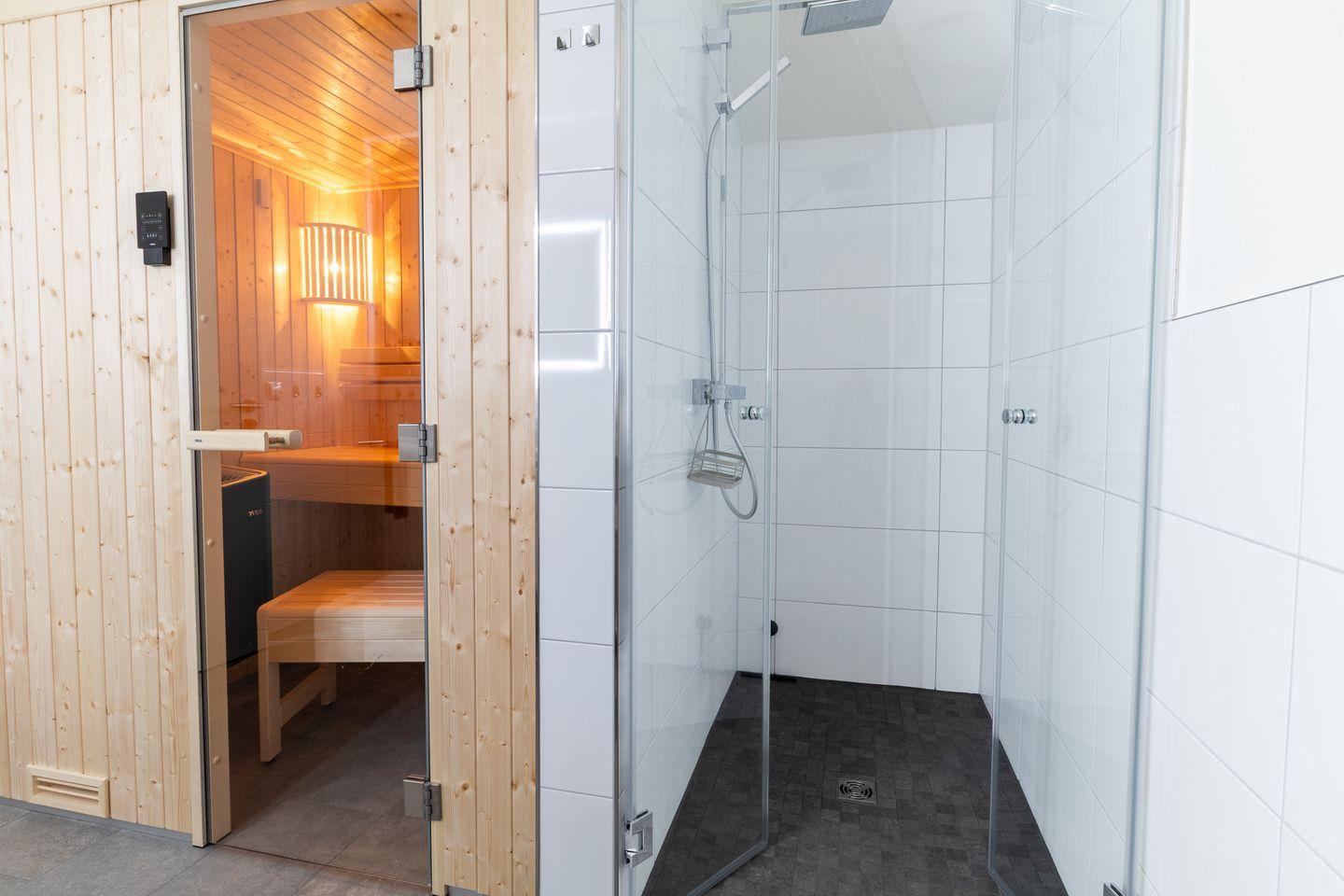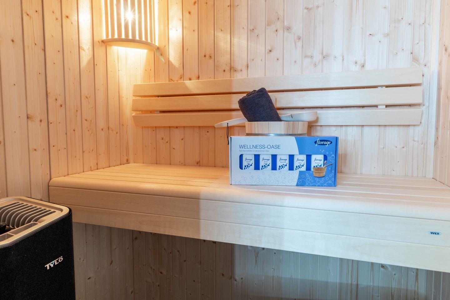 Entspannung pur verspricht deine private Sauna – besonders nach aktiven Tagen am Strand. Das modern gestaltete Badezimmer mit Fußbodenheizung sorgt für echtes Spa-Feeling, während die bodengleiche Dusche dein Wellnesserlebnis abrundet.