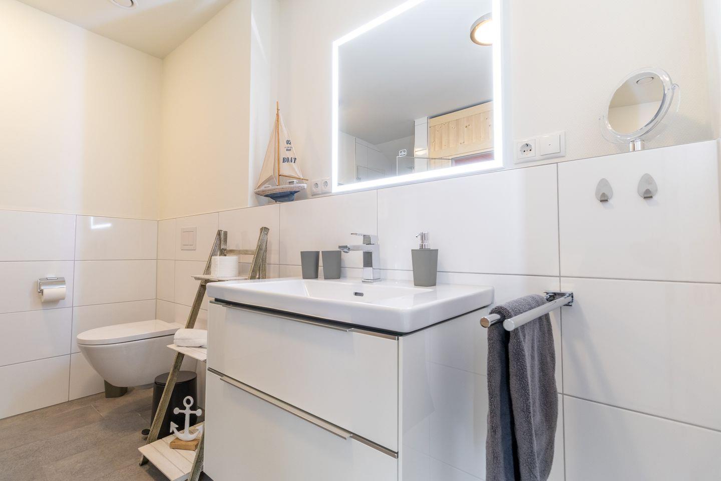 Ergänzt wird der Komfort durch ein separates Gäste-WC, in dem dir auch ein praktischer Waschtrockner zur Verfügung steht – ideal für längere Aufenthalte.
