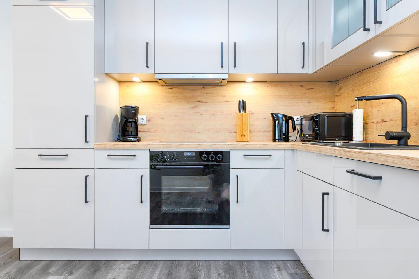 Ein fester Tiefgaragenstellplatz (Durchfahrtshöhe 2,15 m), eine eigene Waschmaschine sowie ein praktischer Abstellraum in der Wohnung stehen dir zur Verfügung. Vor dem Haus findest du eine E-Ladestation für dein Elektroauto. Fahrräder und Sportausrüstung kannst du im abschließbaren Fahrradraum sicher abstellen. Der kontaktlose Check-in per Schlüsseltresor ermöglicht dir maximale Flexibilität bei der Anreise.