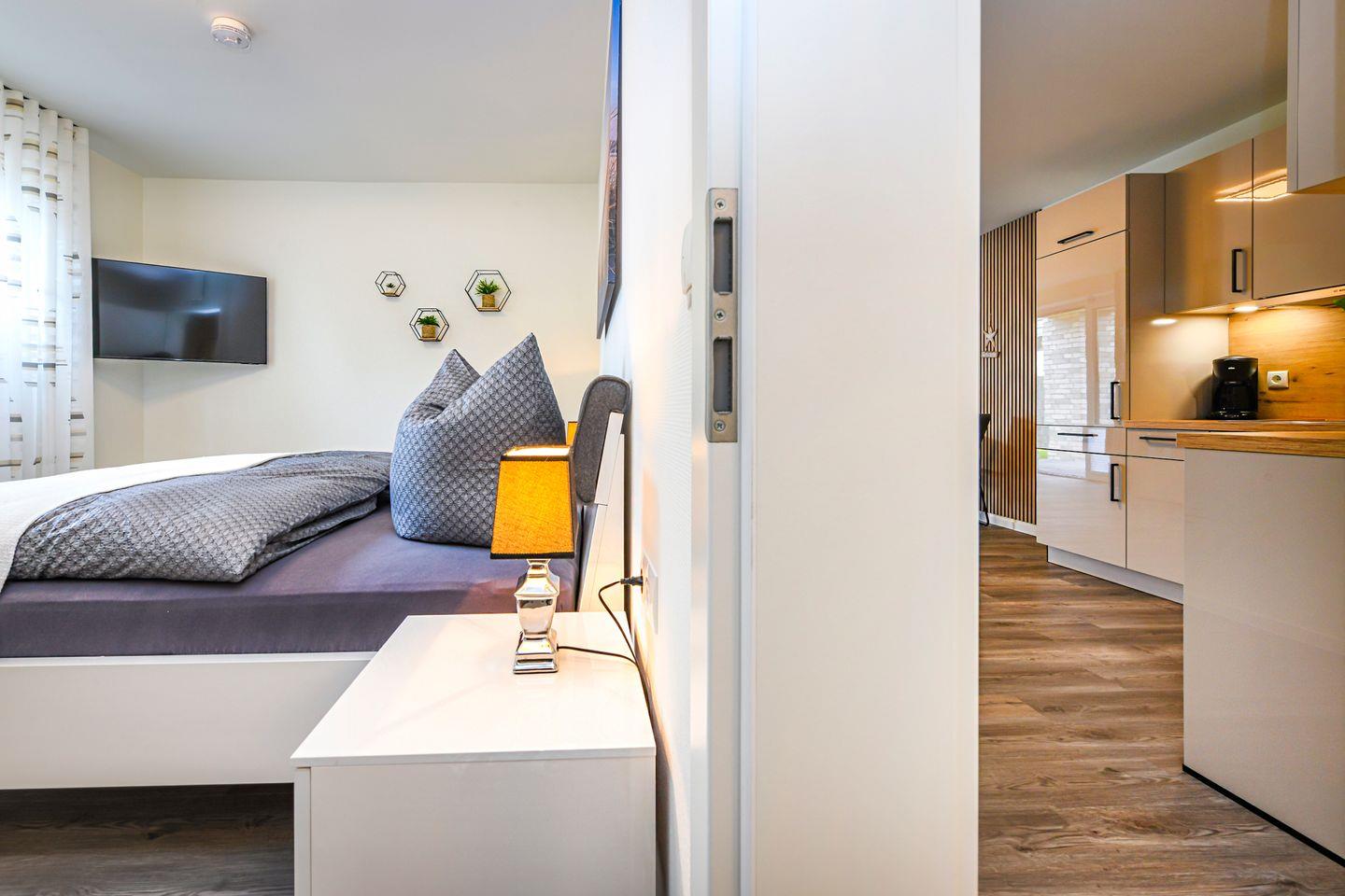 Das behagliche Schlafzimmer lädt mit einem komfortablen Doppelbett und eigenem Smart-TV zu erholsamen Nächten ein. Dank der ruhigen Lage können Sie wunderbar entspannen. Im gemütlichen Wohnbereich steht ein Schlafsofa (140 cm x 200 cm) bereit, das sich perfekt für Kinder eignet und zusätzlichen Schlafkomfort bietet.
