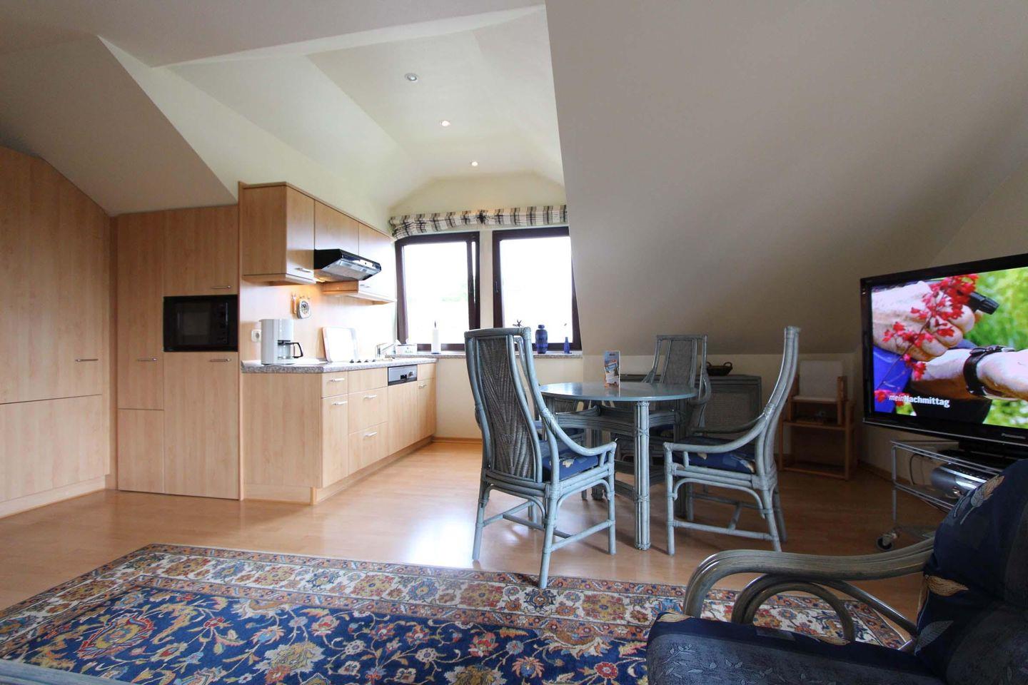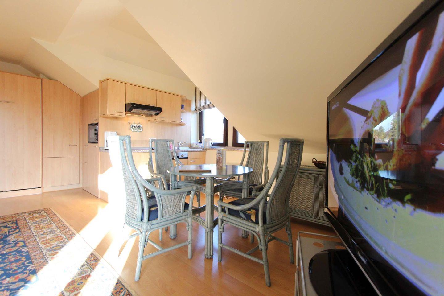 In der Ostlandstraße 26, sehr strandnah, befindet sich diese geräumige 60 qm große Obergeschosswohnung. Der Wohnbereich ist offen und wohnlich gestaltet. Mit einer schönen Sofaecke, einer freundlichen Fensterfront und einem Schrankbett (2 Matratzen á 0,90x1,90m) eingerichtet. Die Küche ist im Wohnzimmer integriert und bietet eine Geschirrspülmaschine, eine Mikrowelle und auch einen schönen Essbereich. Ein separates Schlafzimmer ist niedlich eingerichtet mit einem Einzelbetten (0,80x2,00m). Das zweite Schlafzimmer hat ein Doppelbett (2 Matratzen á 0,90x1,90m) und einen zusätzlichen Fernseher. Für die ganz kleinen Gäste gibt es einen Hochstuhl und ein Kinder-Reisebett auf Anfrage. Das großzügige Badezimmer hat zwei Fenster, einen Handtuchheizkörper und eine Duschkabine. Der Balkon der Wohnung ist sonnig und einladend mit einer sehr schönen Süd-West-Lage. Zum Kellenhusener Strand sind es auch nur ca. 5 Gehminuten. Auch dem Urlaub mit dem Haustier steht generell nichts im Wege, denn nach Rücksprache und gegen Aufpreis sind Haustiere gestattet. Für mitgebrachte Fahrräder steht ein Abstellschuppen zur Verfügung. Sollte das Reisegepäck so gering wie möglich ausfallen, dann ist ein Wäschepaket für den Aufenthalt in Kellenhusen gegen Gebühr einfach buchbar und im Keller können Waschmaschine und Trockner gebührenpflichtig mitbenutzen werden.