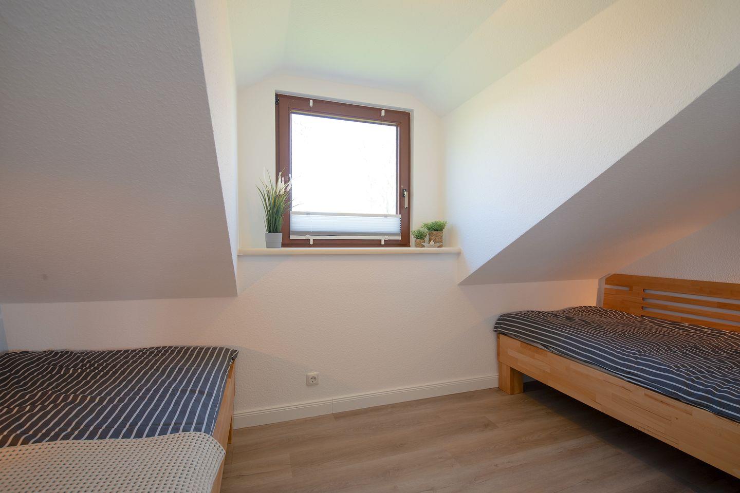 Im separaten Schlafzimmer stehen zwei Einzelbetten bereit. Für unsere kleinsten Gäste stellen wir auf Anfrage ein Kinderreisebett sowie einen Hochstuhl zur Verfügung.