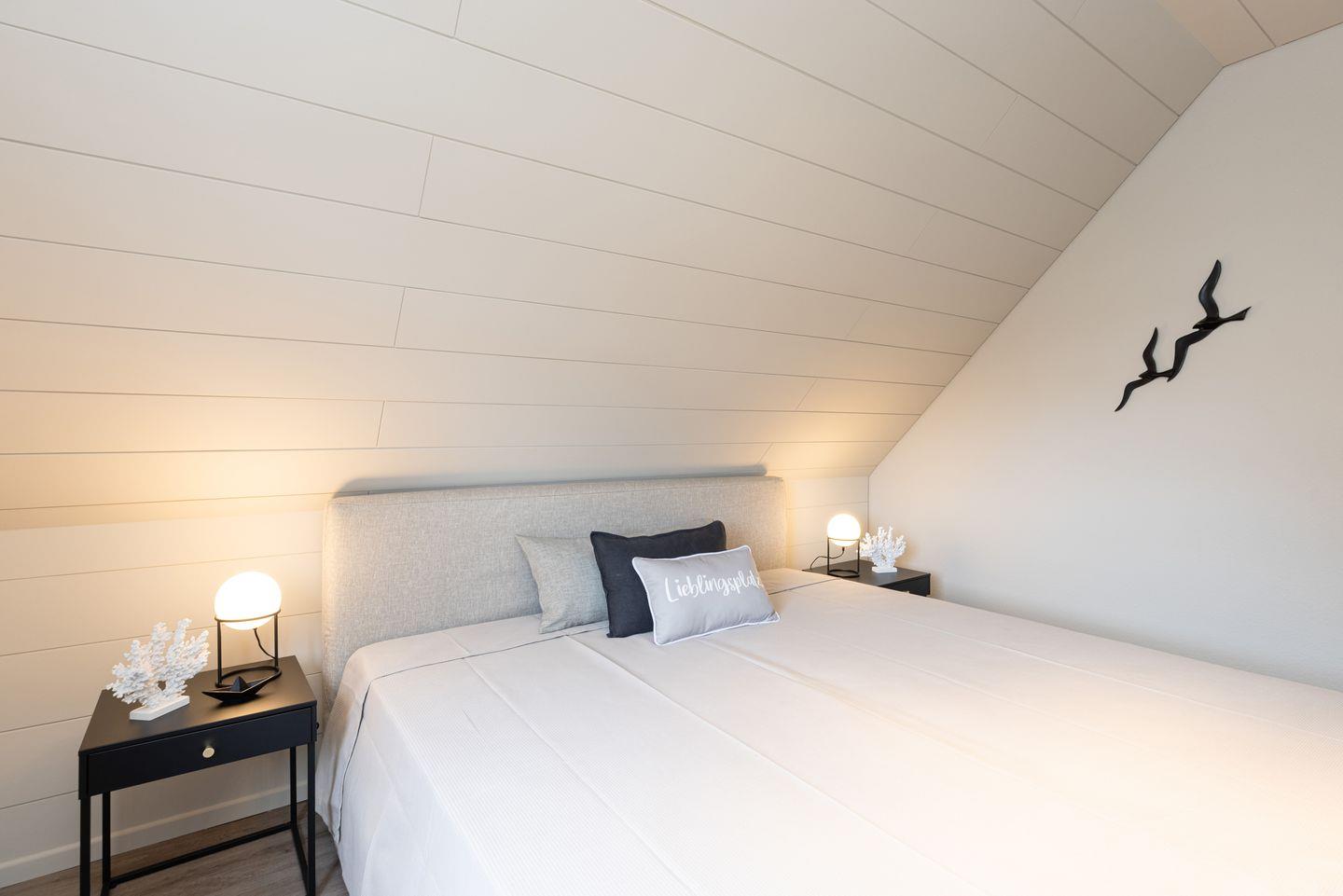 Ein separates Schlafzimmer ist mit einem Doppelbetten (2 Matratzen á 0,90x2,00m) ausgestattet. Für die ganz kleinen Gäste gibt es auf Anfrage ein Kinder-Reisebett und einen Hochstuhl.