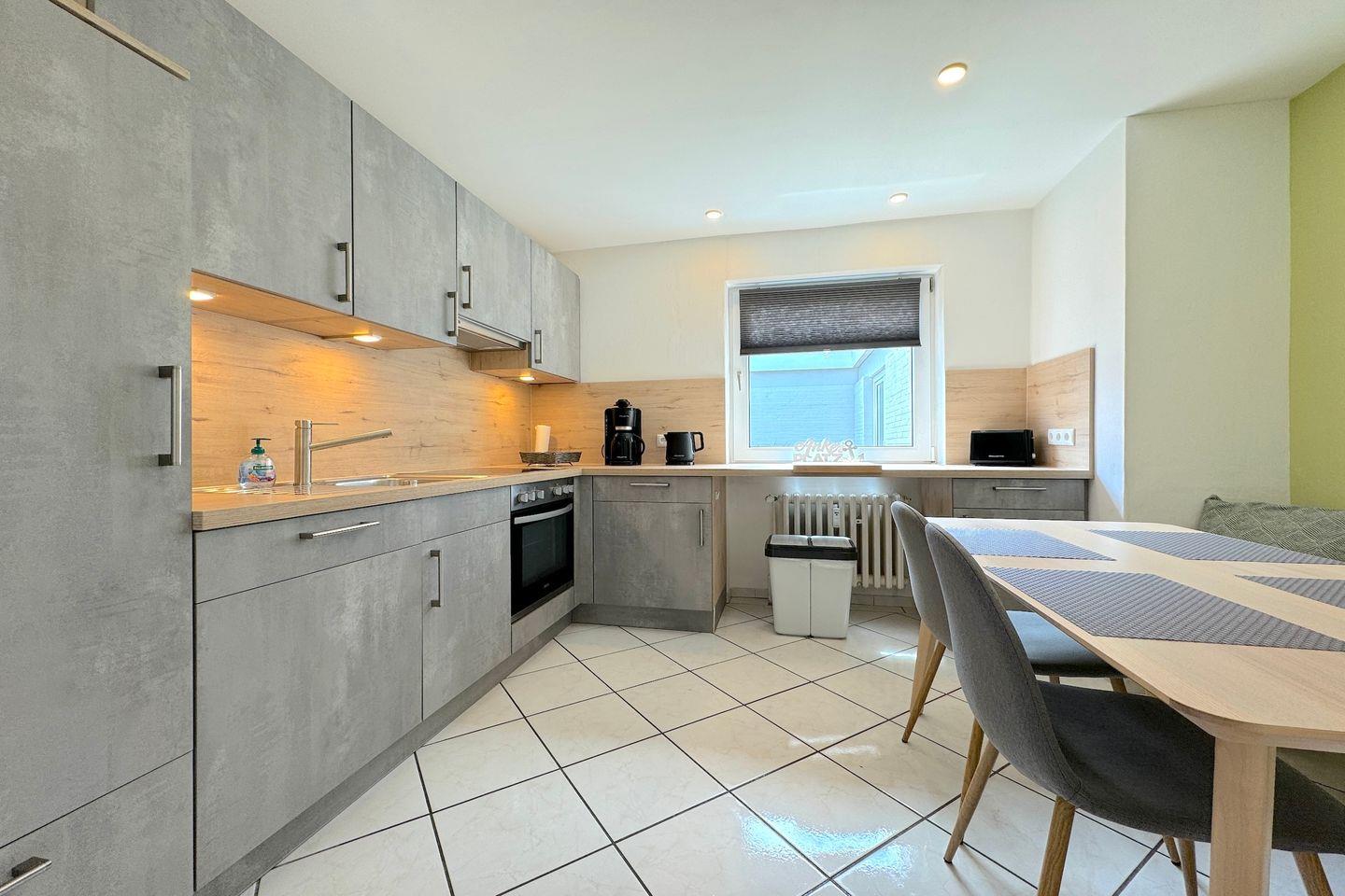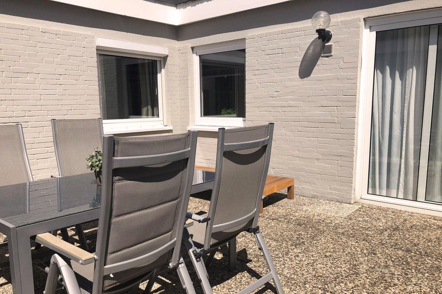 Für den Urlaub mit 4 Personen ist dieses ca. 62 qm große Atriumhaus bestens geeignet. Die Ausstattung des Wohnzimmers ist modern und gemütlich, der Raum selbst ist außergewöhnlich sonnig und hell. Die separate Küche bietet mit dem Backofen, der Geschirrspülmaschine, dem Gefrierfach im Kühlschrank und dem gemütlichen Essbereich einen tollen Rückzugsort zum entspannten Kochen und gemeinsamen Essen. Schlafmöglichkeiten gibt es ein Doppelbett (2 Matratzen á 0,90x2,00m) in dem einen Schlafraum und zwei Einzelbetten (Matratze á 0,90x2,00m) in dem zweiten Schlafraum. Beide Räume sind hochwertig eingerichtet und laden zum entspannen und wohlfühlen ein. Auch für die kleinsten Gäste wäre ein Kinder-Reisebett und ein Hochstuhl verfügbar. Das Badezimmer hat eine ausgesprochen angenehme Größe, dass neben der großen Eckbadewanne sogar eine Waschmaschine Platz gefunden haben. Die innenliegende Terrasse ist vom Wohnzimmer und vom Schlafzimmer zugänglich und hatte die perfekte, sonnige Süd-West-Lage. Insgesamt liegt das Objekt in bester zentraler Lage, das Auto kann auf dem dazugehörigen Parkplatz bleiben, denn bis zum Sandstrand sind es nur 5 Gehminuten. Auch dem Urlaub mit dem Haustier steht generell nichts im Wege, denn nach Rücksprache und gegen Aufpreis sind Haustiere gestattet. Eine Besonderheit hier ist es, dass der Eigentümer Ihnen kostenfrei die Erstausstattung der Bettwäsche zur Verfügung stellt.